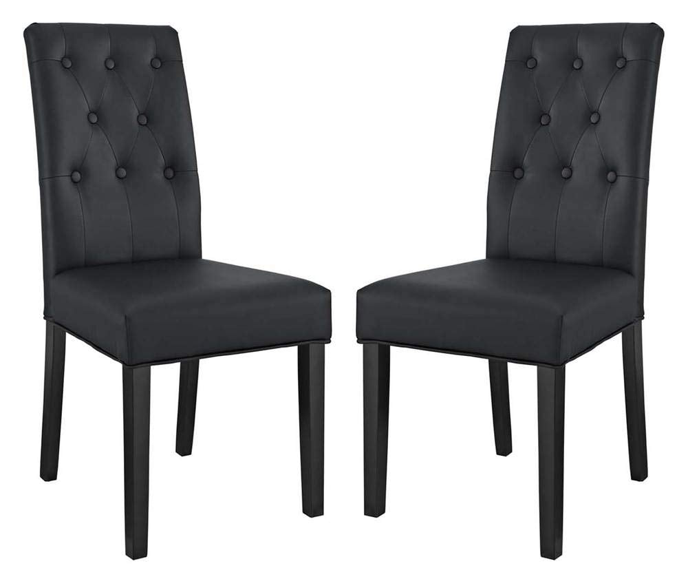 Modway Confer Modern Tufted Faux Leather Upholstered Parsons Two Dining Chairs In Black