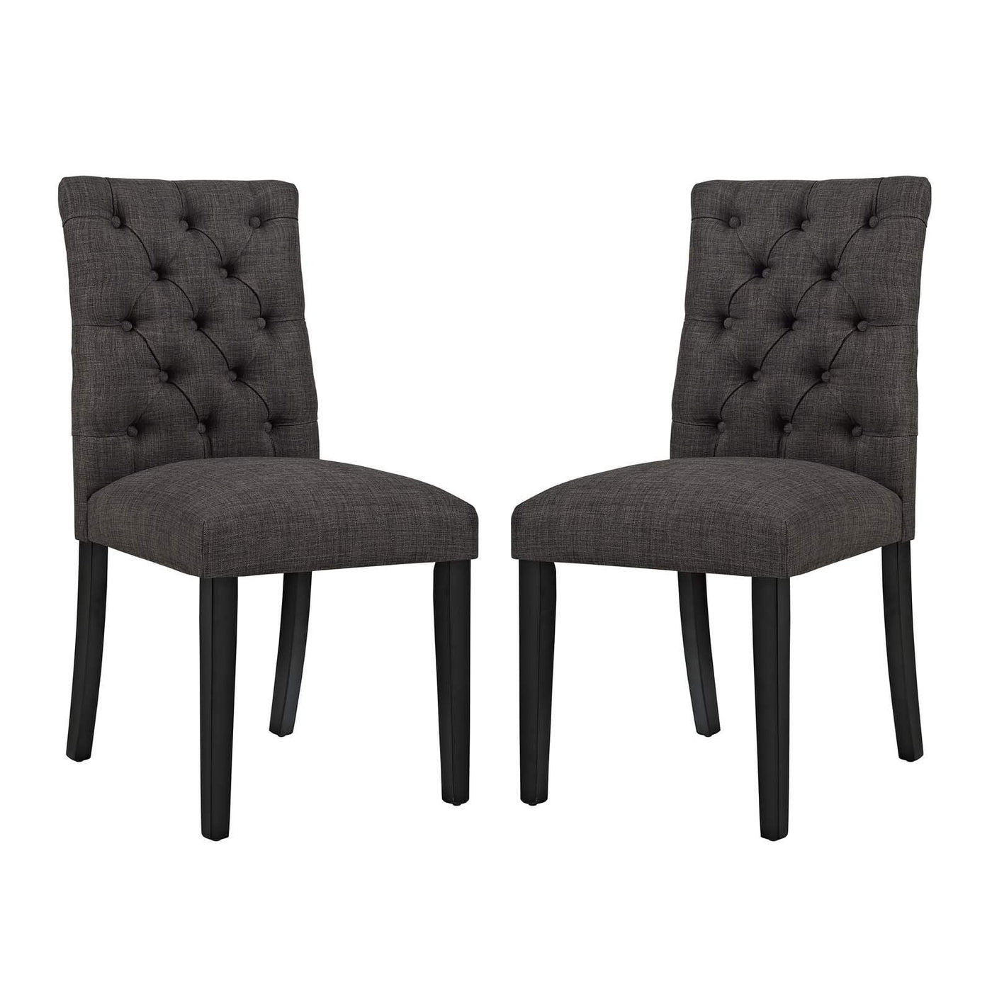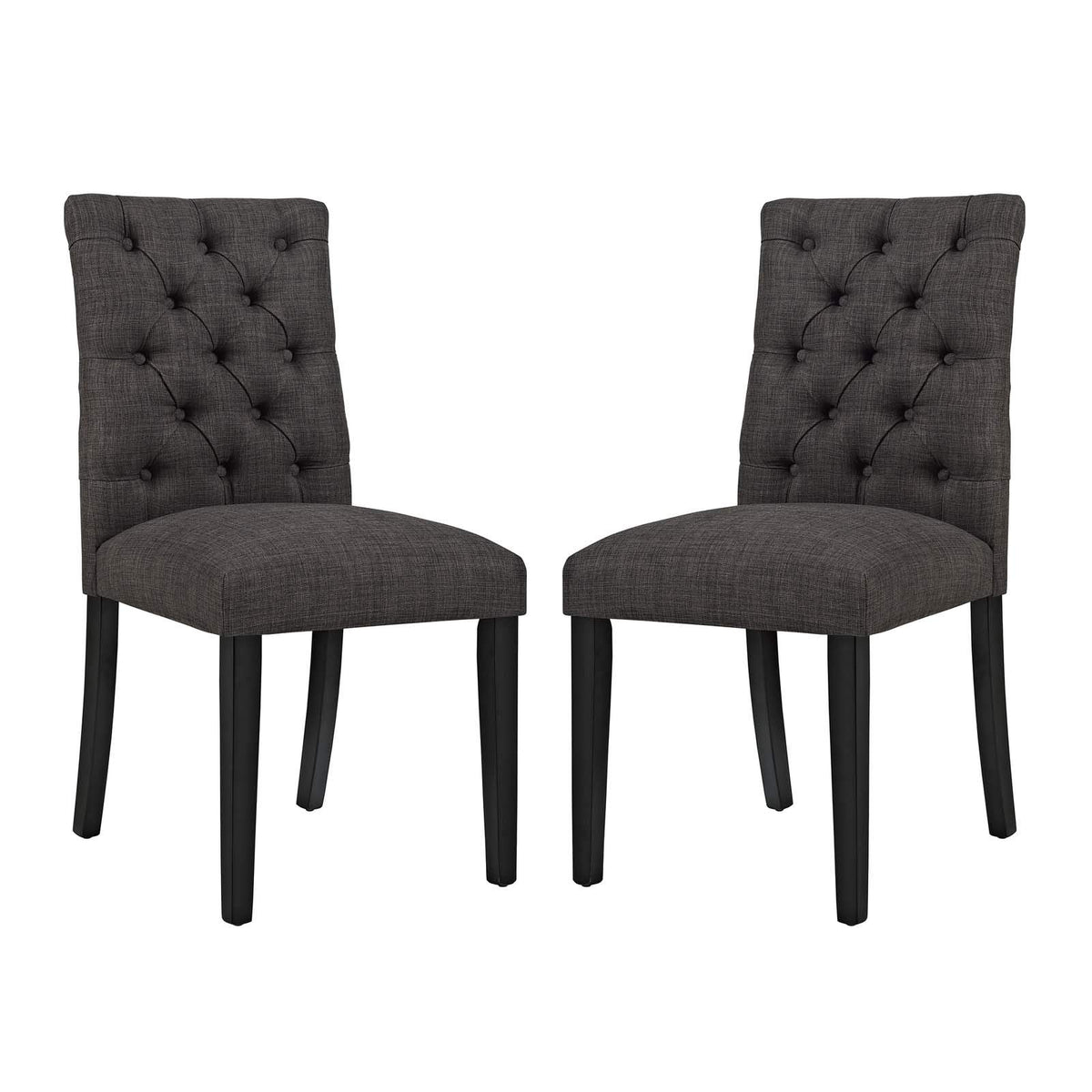 Modway Duchess Modern Tufted Button Upholstered Fabric Parsons Two Dining Chairs in Brown