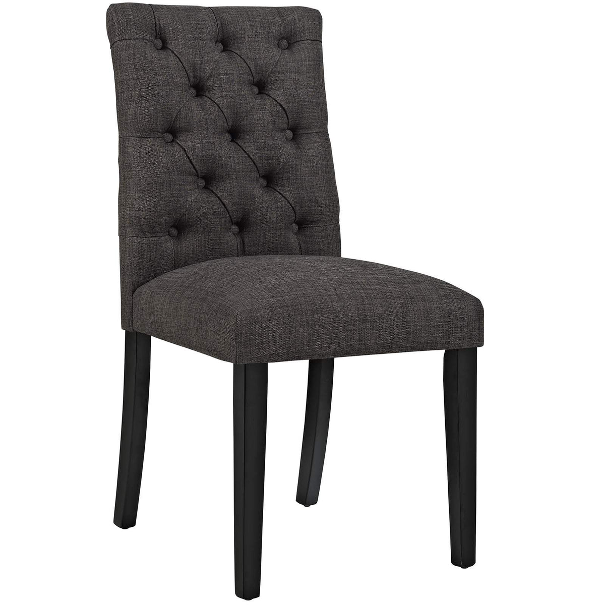Bestow elegance with the Duchess Dining Room Accent Chair. Chic and luxurious, Duchess Chair features a stylish curvy form, richly tufted button back, dense foam padding, durably soft fabric upholstery, and wood legs topped with non-marking foot caps. Resonate grace and charm with a dining chair perfect for the modern dining room.