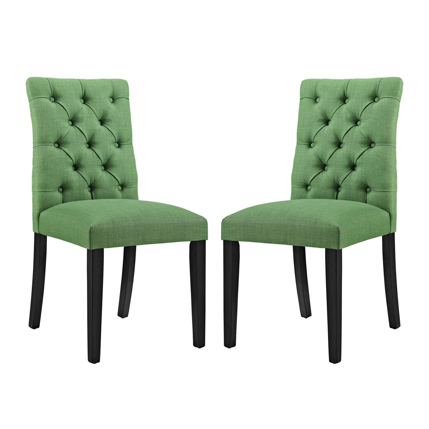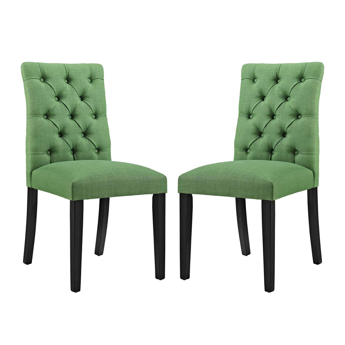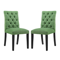 Modway Duchess Modern Tufted Button Upholstered Fabric Parsons Two Dining Chairs in Green