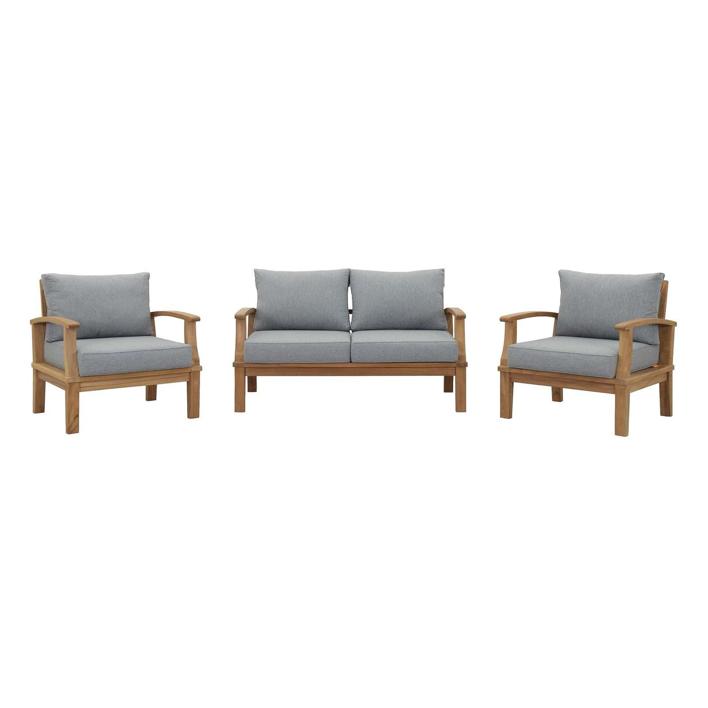 Modway Eei-1470-Nat-Gry-Set Marina Premium Grade A Teak Wood Outdoor Patio, Loveseat And Two Armchairs, Natural Gray