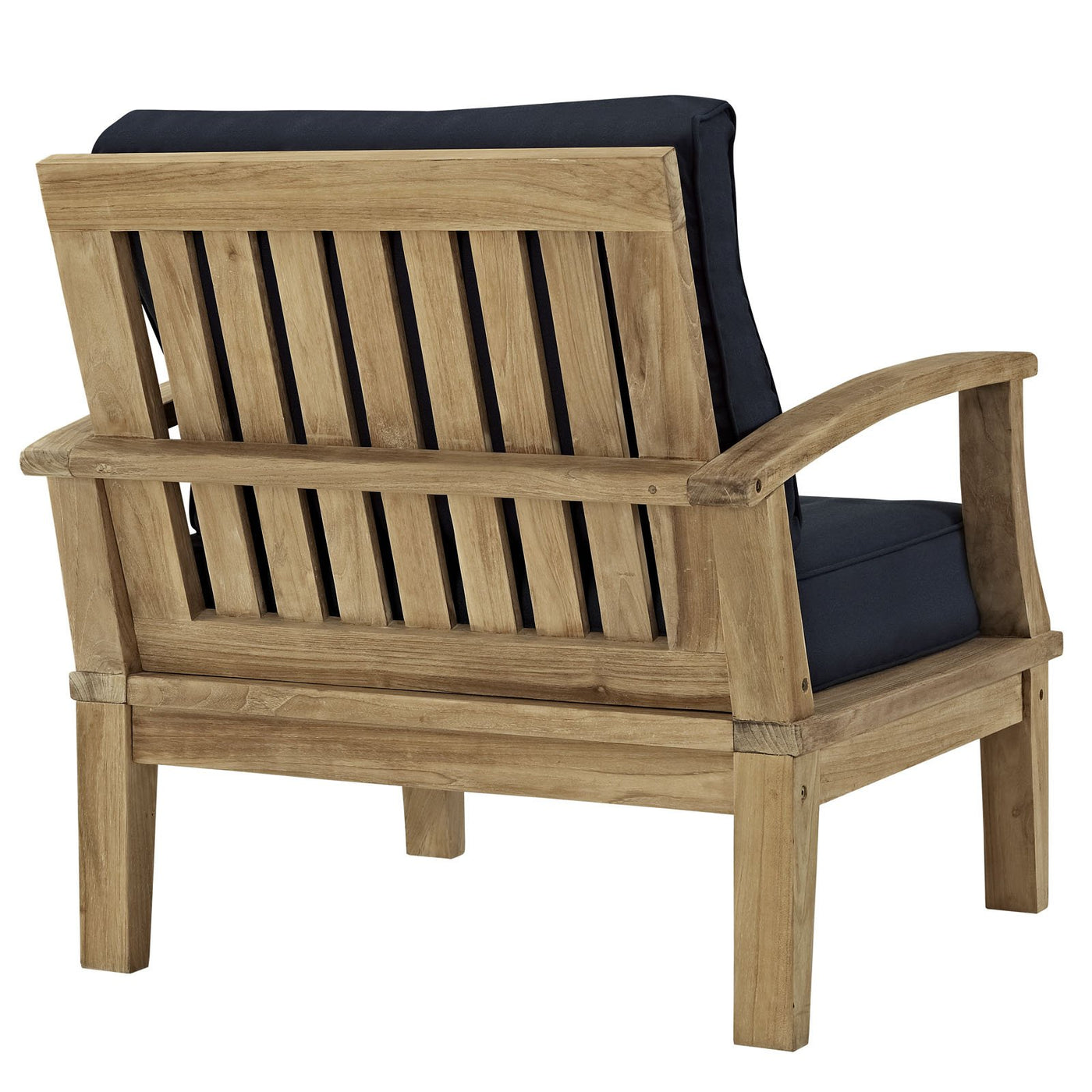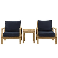 Modway Eei-1487-Nat-Nav-Set Marina 3 Piece Outdoor Patio Teak Set In Natural Navy, Two Armchairs And Side Table