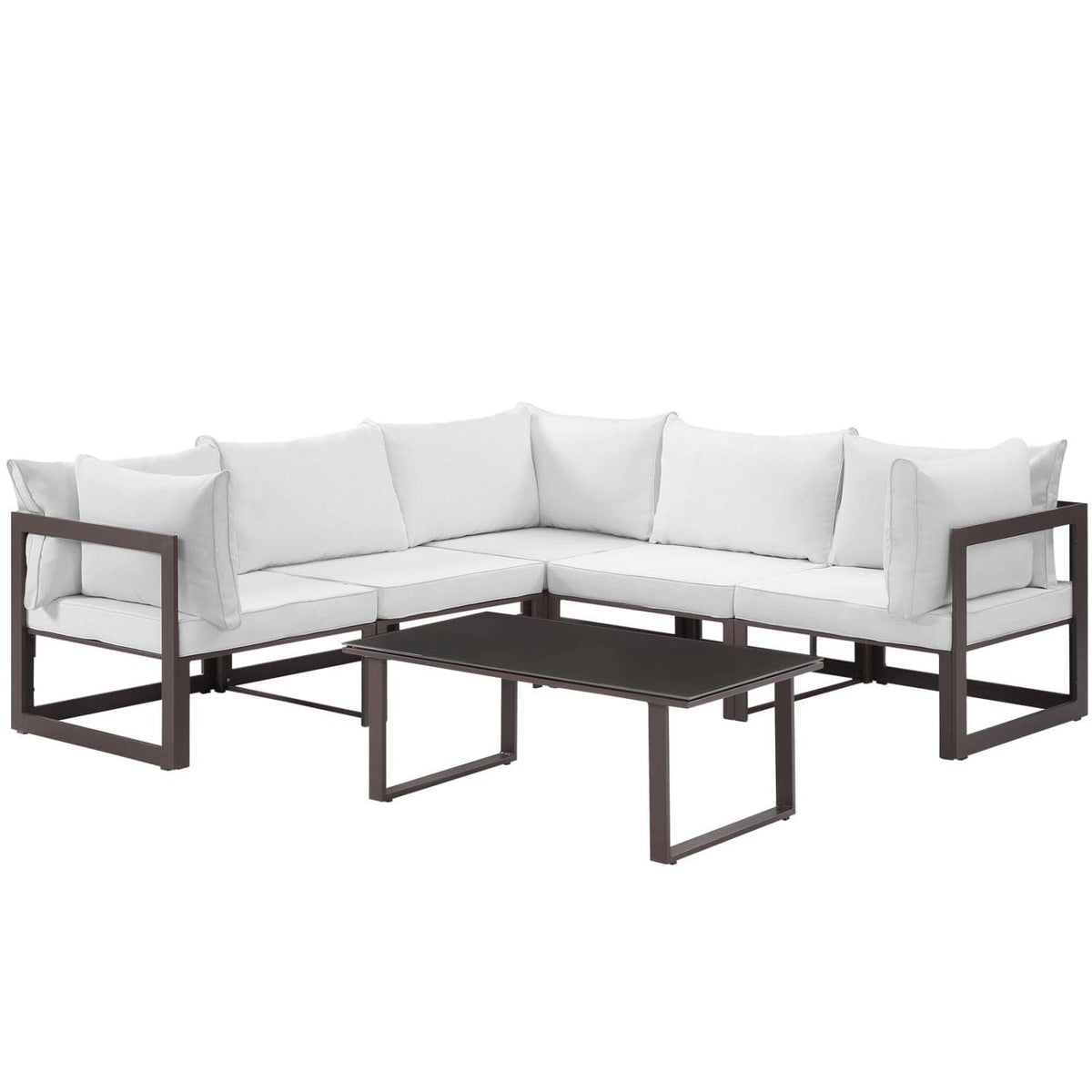 Modway EEI-1732-BRN-WHI-SET Fortuna Outdoor Patio Sectional Sofa Set, 6 Piece, Brown White