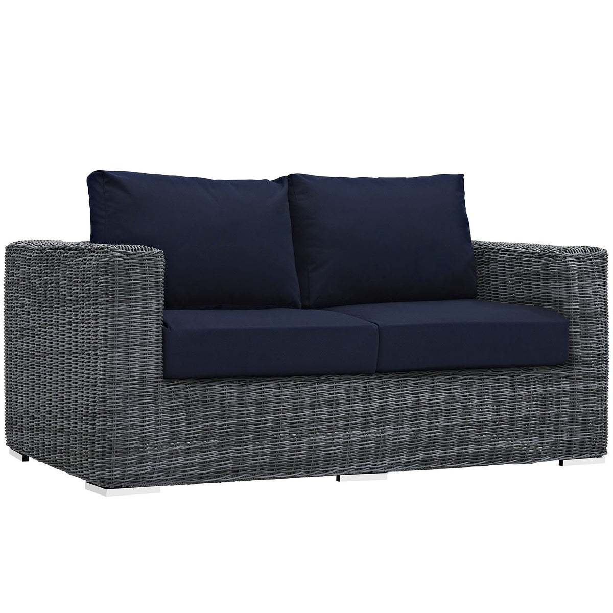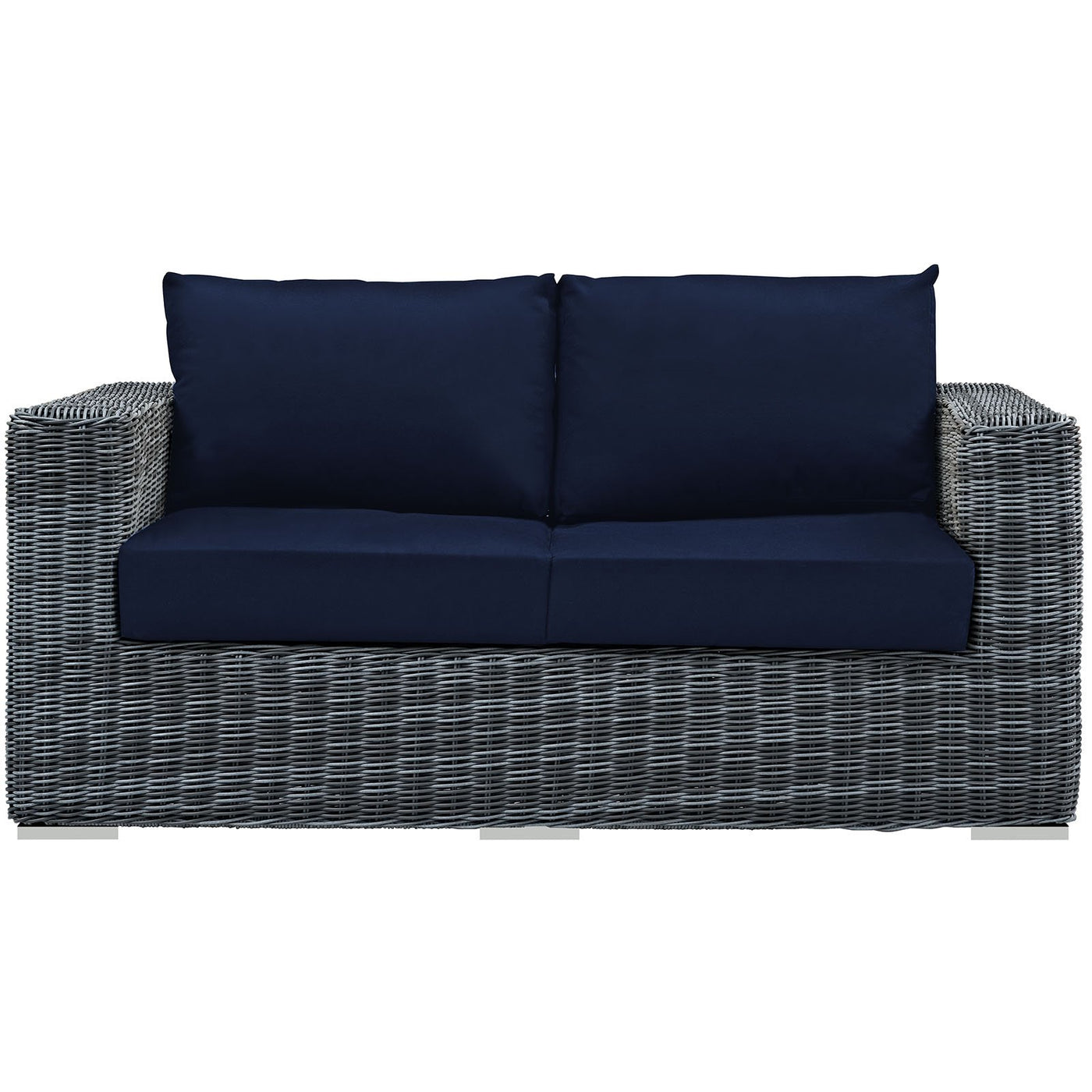 Modway Eei-1865-Gry-Nav Summon Wicker Rattan Outdoor Patio Sunbrella Loveseat In Canvas Navy