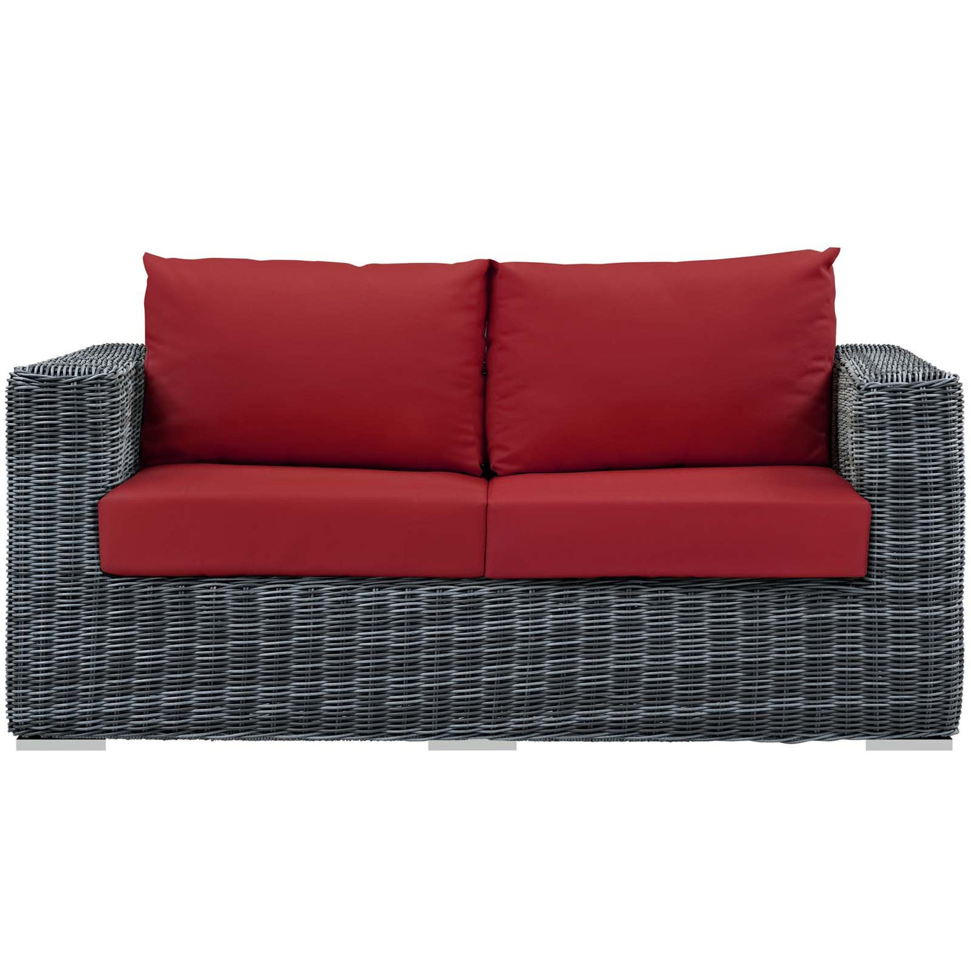 Modway Eei-1865-Gry-Red Summon Wicker Rattan Outdoor Patio Sunbrella Loveseat In Canvas Red