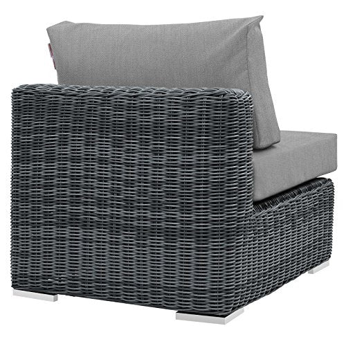 Experience the outdoors with exceptional comfort and quality. Summon Outdoor Patio Armless Sectional Sofa Chair offers an exquisite two-tone synthetic rattan weave, plush all-weather cushions with industry-leading Sunbrella fabric, UV protection, and a sturdy powder-coated aluminum frame. Featuring an elegant modern look, Summon Patio Armless Sofa Chair is part of an avant-garde outdoor sectional series well-equipped for enhancing patio, backyard, or poolside gatherings. This installment of the series is an Outdoor Patio Armless Sofa Chair.