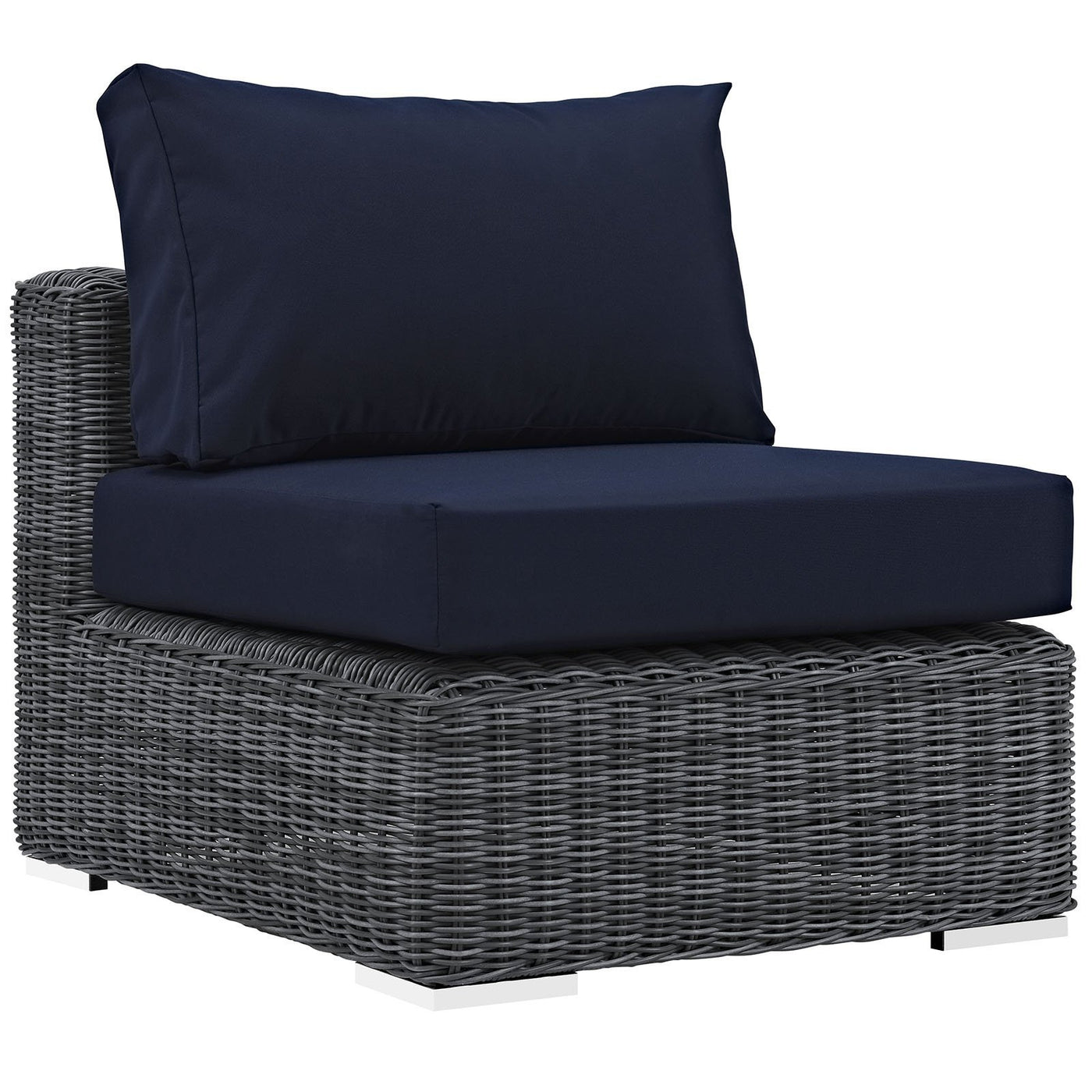 Modway Eei-1868-Gry-Nav Summon Wicker Rattan Outdoor Patio Sunbrella Armless Chair In Canvas Navy