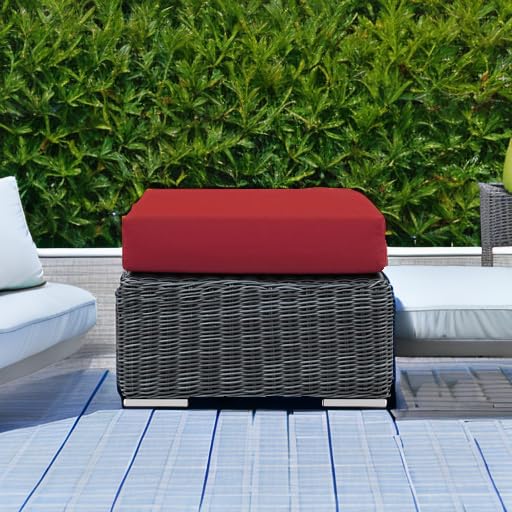 Modway Eei-1869-Gry-Red Summon Wicker Rattan Outdoor Patio Sunbrella Square Ottoman In Canvas Red