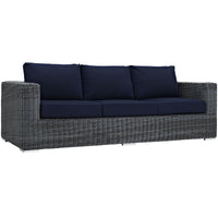 Modway Eei-1874-Gry-Nav Summon Wicker Rattan Outdoor Patio Sunbrella Sofa In Canvas Navy