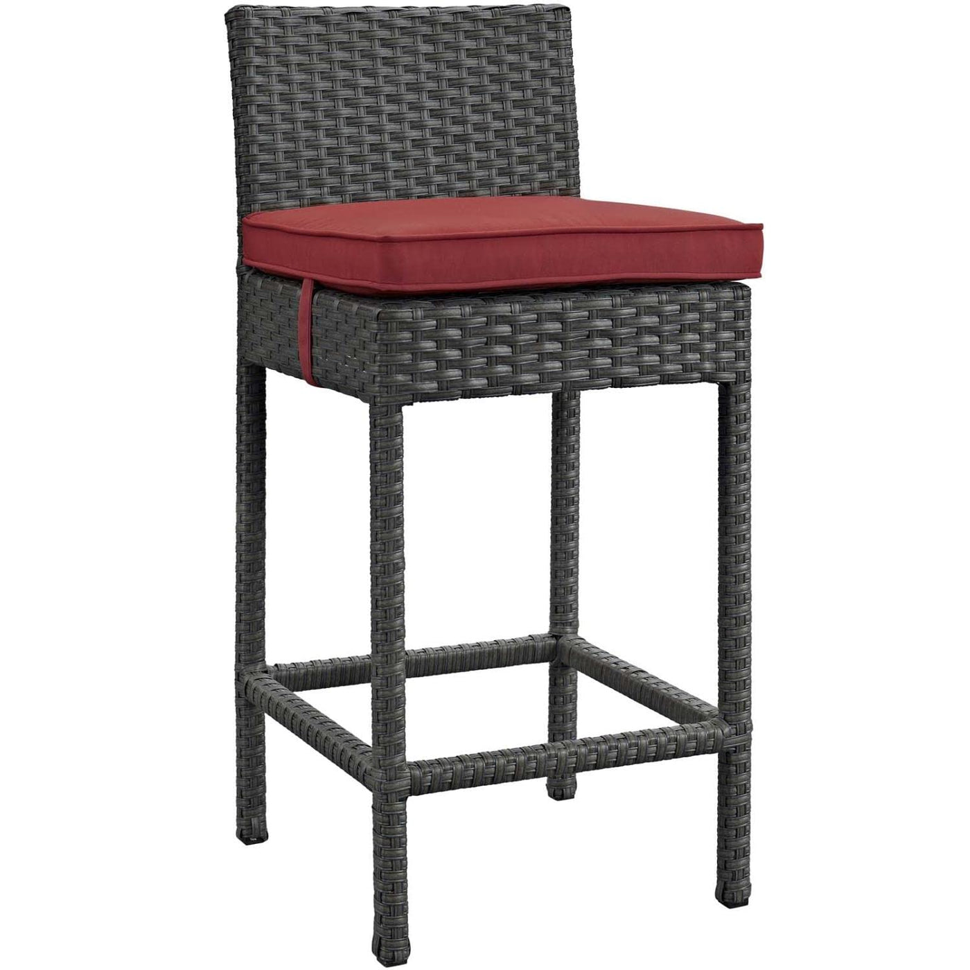 Modway EEI-2195-CHC-RED-SET Sojourn Wicker Rattan Outdoor Patio Sunbrella Two Bar Stools in Canvas Red
