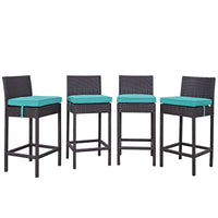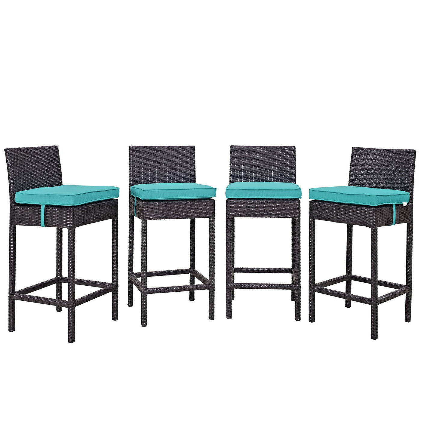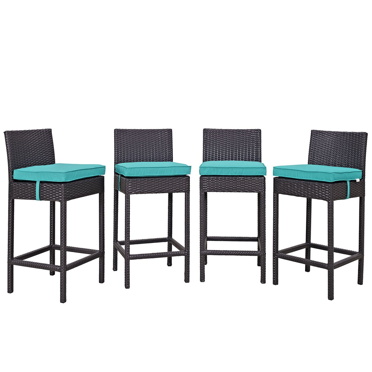 Modway Eei-2218-Exp-Trq-Set 4 Piece Pub Set Convene Wicker Rattan Outdoor Patio Cushions, Four Bar Stools, Espresso/Turquoise