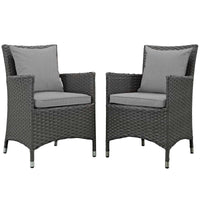 Modway Eei-2242-Chc-Gry-Set Sojourn Wicker Rattan Outdoor Patio Sunbrella Dining Chairs In Canvas Gray, Two Armchairs
