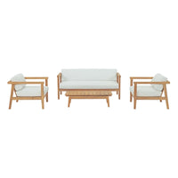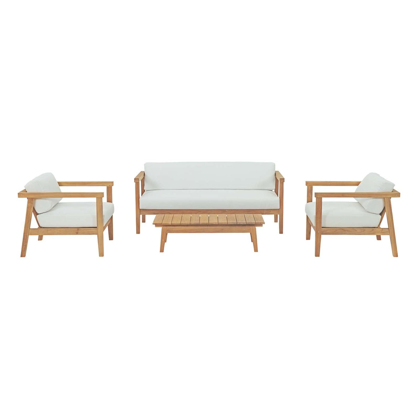 Modway Eei-3111-Nat-Whi-Set Bayport Outdoor Patio Teak, Two Armchairs, Loveseat, And Coffee Table, Natural White