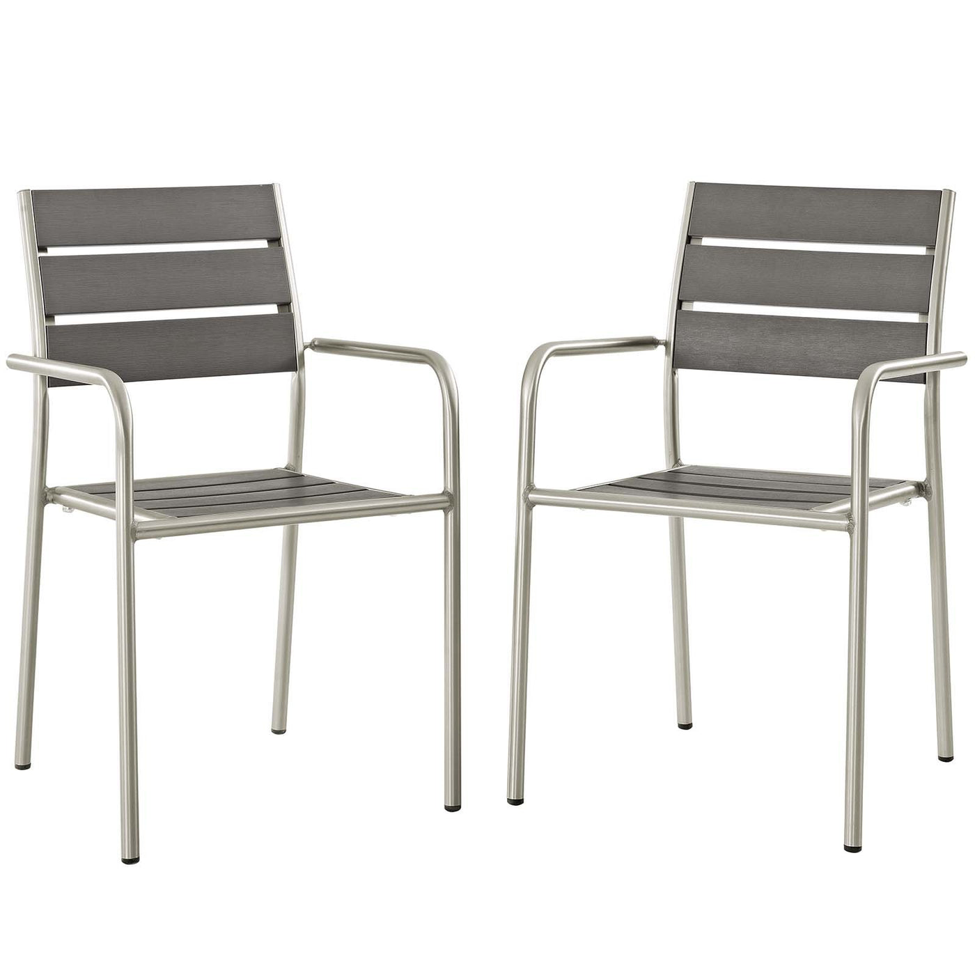 Enjoy Your Patio Or Backyard Leisure Time With The Strong And Durable Shore Outdoor Aluminum Dining Arm Chair. Made With An Anodized Brushed Aluminum Frame, Sleek Tube Form, And Non-Marking Black Plastic Foot Caps, Shore Features Tone-On-Tone Grays With Wood Accents On The Paneling For A Chic And Minimalist Look. The Shore Outdoor Aluminum Dining Arm Chair Complements Your Casual Gatherings With A Look And Functionality That You Can Rely On.