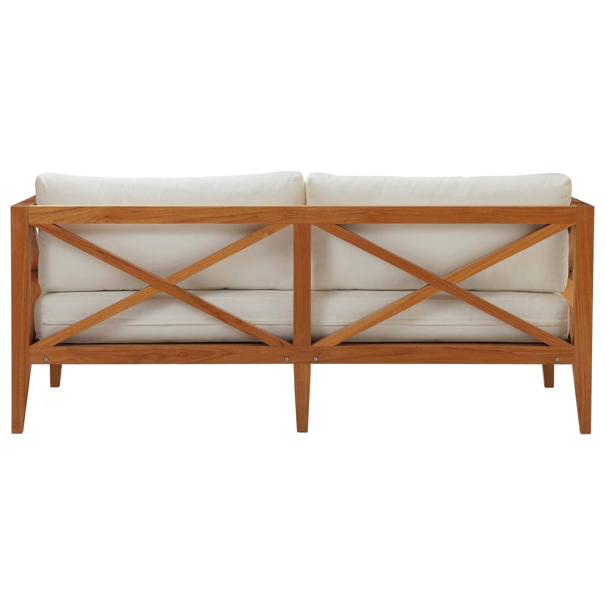 Modway Eei-3427-Nat-Whi Northlake Outdoor Patio Premium Grade A Teak Sofa Couch With Sunproof Cushions, Natural White