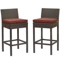 Modway Eei-3603-Brn-Cur Conduit Outdoor Patio Wicker Rattan Set Of 2, Two Bar Stools, Brown Currant