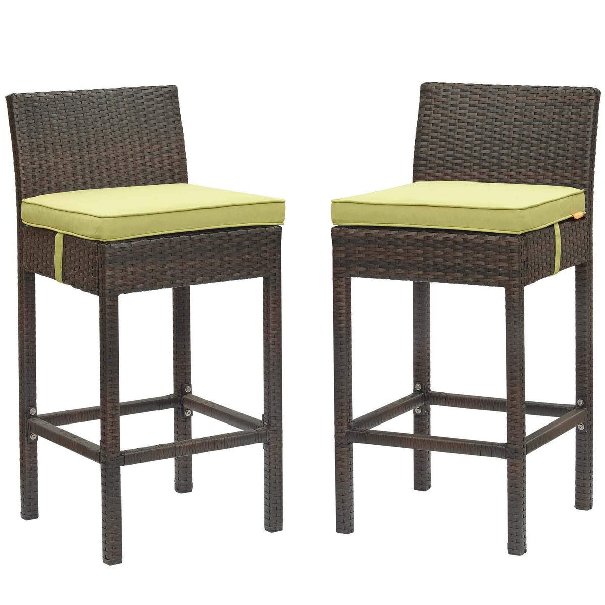 Modway Eei-3603-Brn-Per Conduit Outdoor Patio Wicker Rattan Set Of 2, Two Bar Stools, Brown Peridot