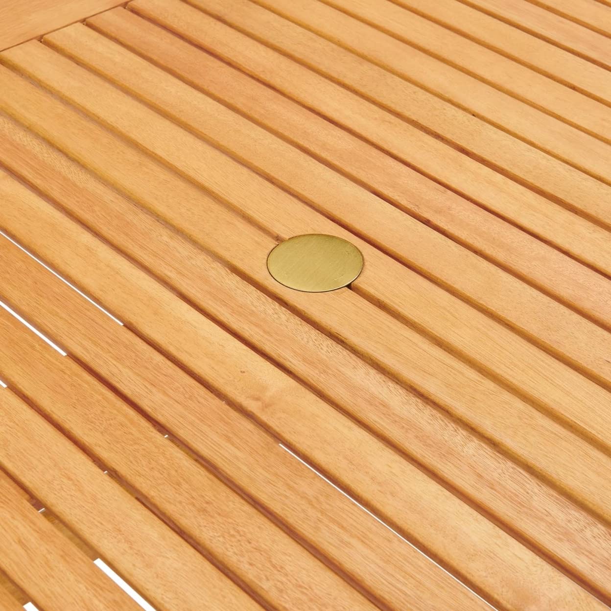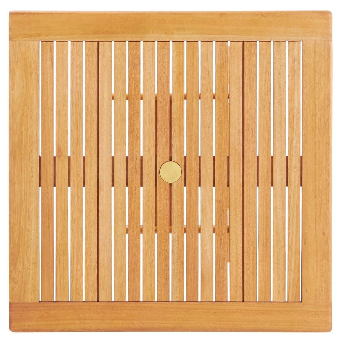 Reinvent The Elegance Of Minimalism With The Hatteras Outdoor Patio Wood 36” Dining Table. Hatteras Has A Refreshing Back To Basics Feel That Elevates Your Patio Decor To New Heights. Solidly Constructed From Fsc Certified Eucalyptus Wood, The Wood Slats Give This Outdoor Dining Table A Natural Airflow For Enjoyable Dining. The Hatteras Outdoor Patio Table Has An Organic Design Ideal For The Patio, Poolside, Porch, Backyard, Or Deck. Hatteras Features A 2” Umbrella Slot With A Gold Metal Protective Cover. Seats Up To Four. Table Weight Capacity: 331 Lbs. Set Includes: One - Hatteras Eucalyptus Wood 36" Square Dining Table Product Dimensions: Overall Product Dimensions: 35. 5"L X 35. 5"W X 28. 5"H