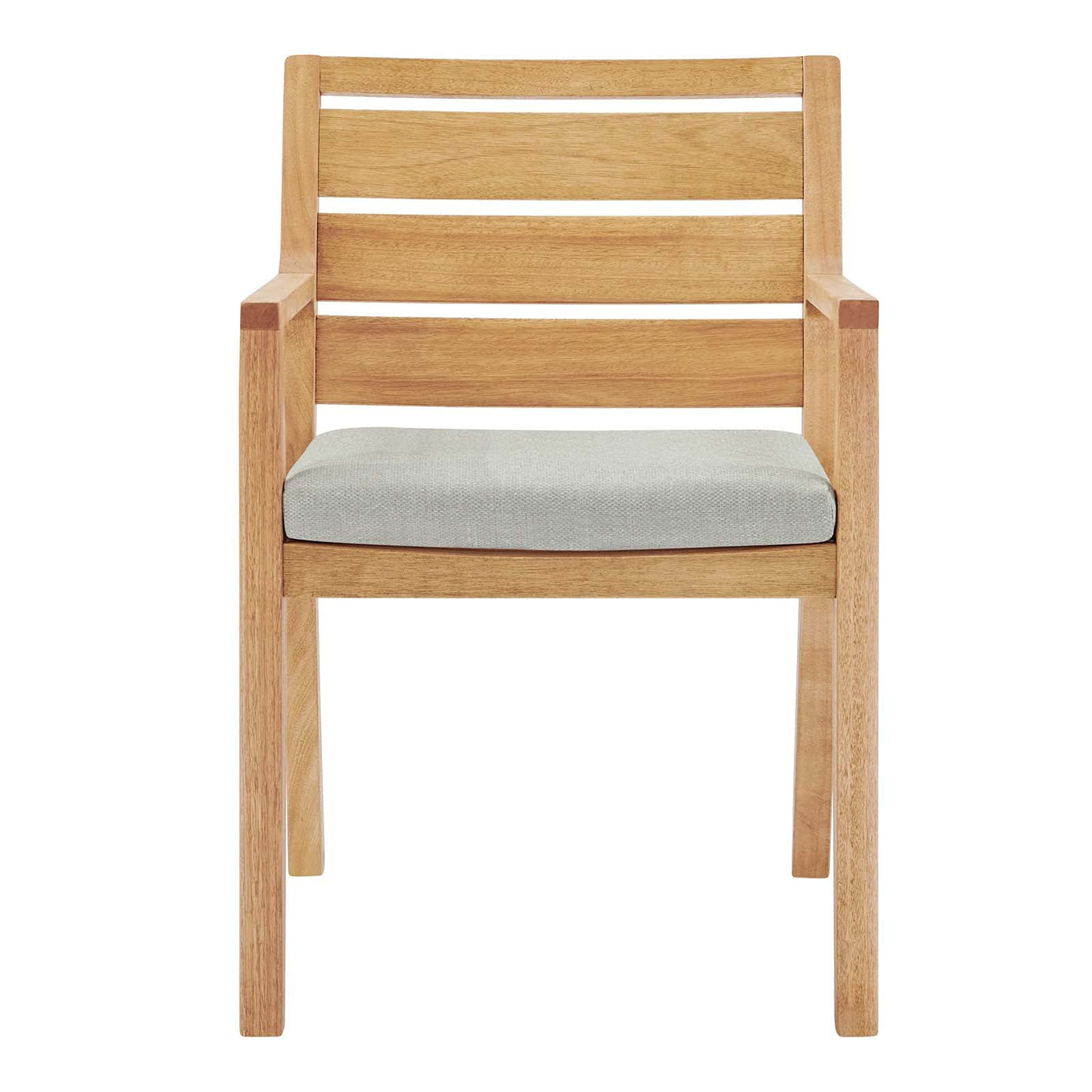 Recreate The Coziness Of Indoor Dining In Your Outdoor Decor With Portsmouth Outdoor Patio Wood Armchair. Solidly Constructed From Fsc Certified Karri Wood, The Slatted Back, Seat, And Sleek Organic Design Produce An Innate Beauty That Will Draw The Attention Of Friends And Family. A Removable All-Weather Cushion Allows For Easy-To-Clean Usage Of This Outdoor Patio Chair. Portsmouth Has Four Sturdy Tapered Legs With Comfortable Support For Any Gathering In Your Backyard, Patio, Porch, Or Deck. Introduce The Portsmouth Patio Dining Armchair To Your Space And Allow The Modern Farmhouse Charm To Transform Your Patio Furniture Decor. Chair Weight Capacity: 331 Lbs. Set Includes: One - Portsmouth Karri Wood Dining Armchair Product Dimensions: Overall Product Dimensions: 24. 5"L X 23. 5"W X 35. 5"H Seat Dimensions: 18. 5"L X 18. 5"W X 23"H Seat Cushion Dimensions: 19"L X 19. 5"W X 1"H Backrest Dimensions: 23"W X 17"H Armrest Height: 25. 5"H
