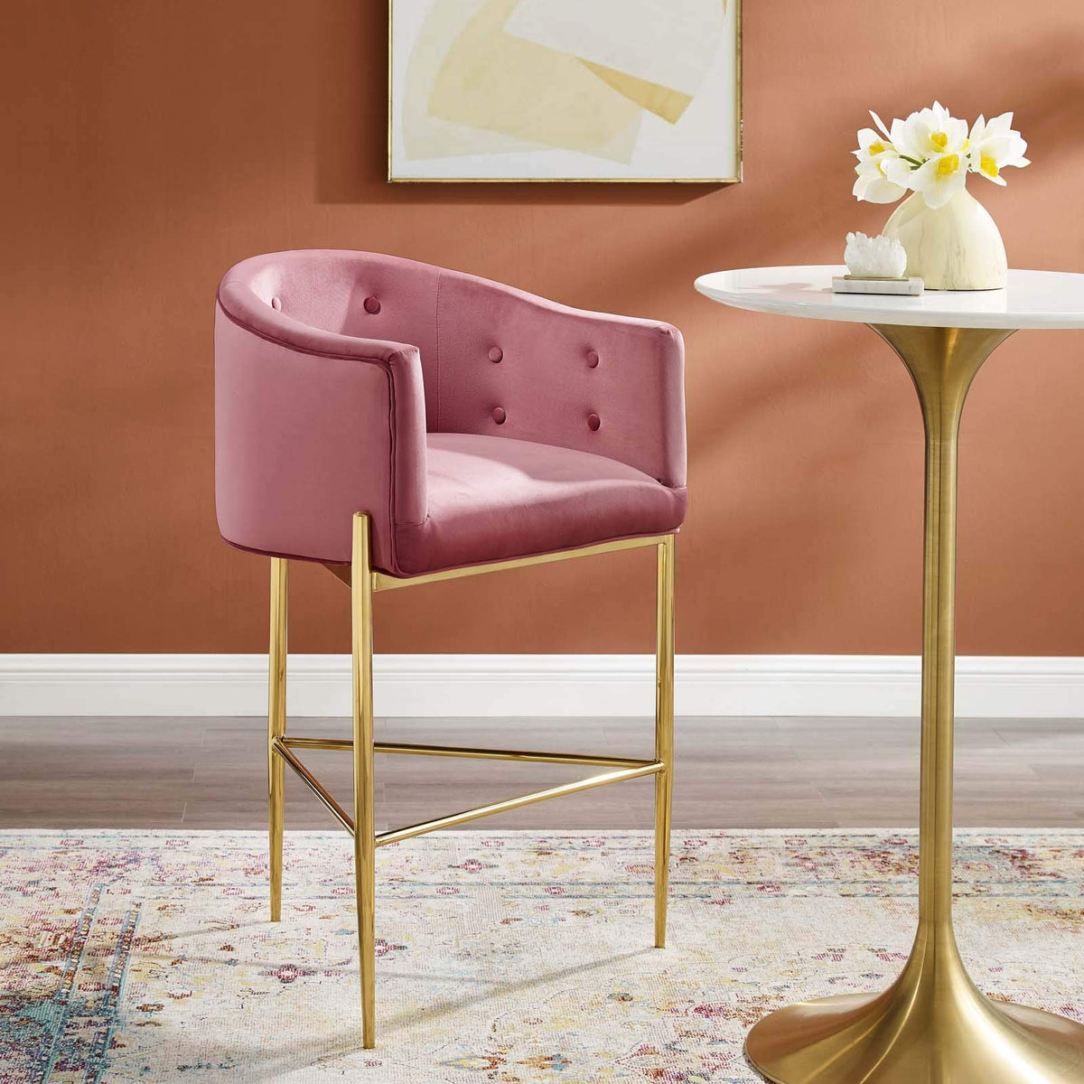 Modway Eei-3911 Savour Tufted Performance Velvet Bar Stool, Dusty Rose