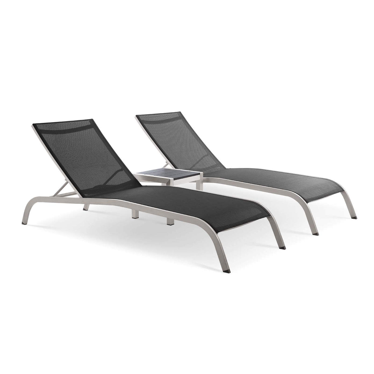 Energize Your Patio Decor With The Versatile Vintage Glamour Savannah Outdoor Patio Mesh Chaise Lounge Chair Set With Side Table. A Sleek Design That Evokes A Retro-Modern Feel, Savannah Chaise Lounge Chairs Feature All-Weather Textilene Mesh Fabric That Creates A Breathable Fabric For A Pleasant Outdoor Lounging Experience. Complete With An Anodized Matte Aluminum Frame With Non-Marking Foot Caps, These Deceptively Simple Pieces Create An Aura Of Vintage Glamour In Your Patio Decor. This Set Of Elegant Outdoor Sun Loungers Is A Perfect Addition To The Backyard, Poolside, Porch, Deck, Or Balcony. Chair Weight Capacity: 661 Lbs. Set Includes: One - Shore Side Table Two - Savannah Outdoor Patio Mesh Chaise Lounge Chair Product Dimensions: Overall Product Dimensions: 76. 5"L X 65. 5"W X 14"H Individual Chaise Dimensions: 76. 5"L X 25"W X 12"H Table Dimensions: 15. 5"L X 15. 5"W X 14"H
