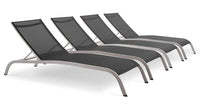 Energize Your Patio Decor With The Versatile Vintage Glamour Savannah Outdoor Patio Mesh Chaise Lounge Chair Set Of 4. A Sleek Design That Evokes A Retro-Modern Feel, Savannah Features All-Weather Textilene Mesh Fabric That Creates A Breathable Fabric For A Pleasant Outdoor Lounging Experience. Complete With An Anodized Matte Aluminum Frame With Non-Marking Foot Caps, Savannah Is A Deceptively Simple Piece Creates An Aura Of Vintage Glamour In Your Patio Decor. This Set Of Elegant Outdoor Sun Loungers Is A Perfect Addition To The Backyard, Poolside, Porch, Deck, Or Balcony. Chair Weight Capacity: 661 Lbs. Set Includes: Four - Savannah Outdoor Patio Mesh Chaise Lounge Chair Product Dimensions: Overall Product Dimensions: 76. 5"L X 100"W X 12"H Individual Chaise Dimensions: 76. 5"L X 25"W X 12"H