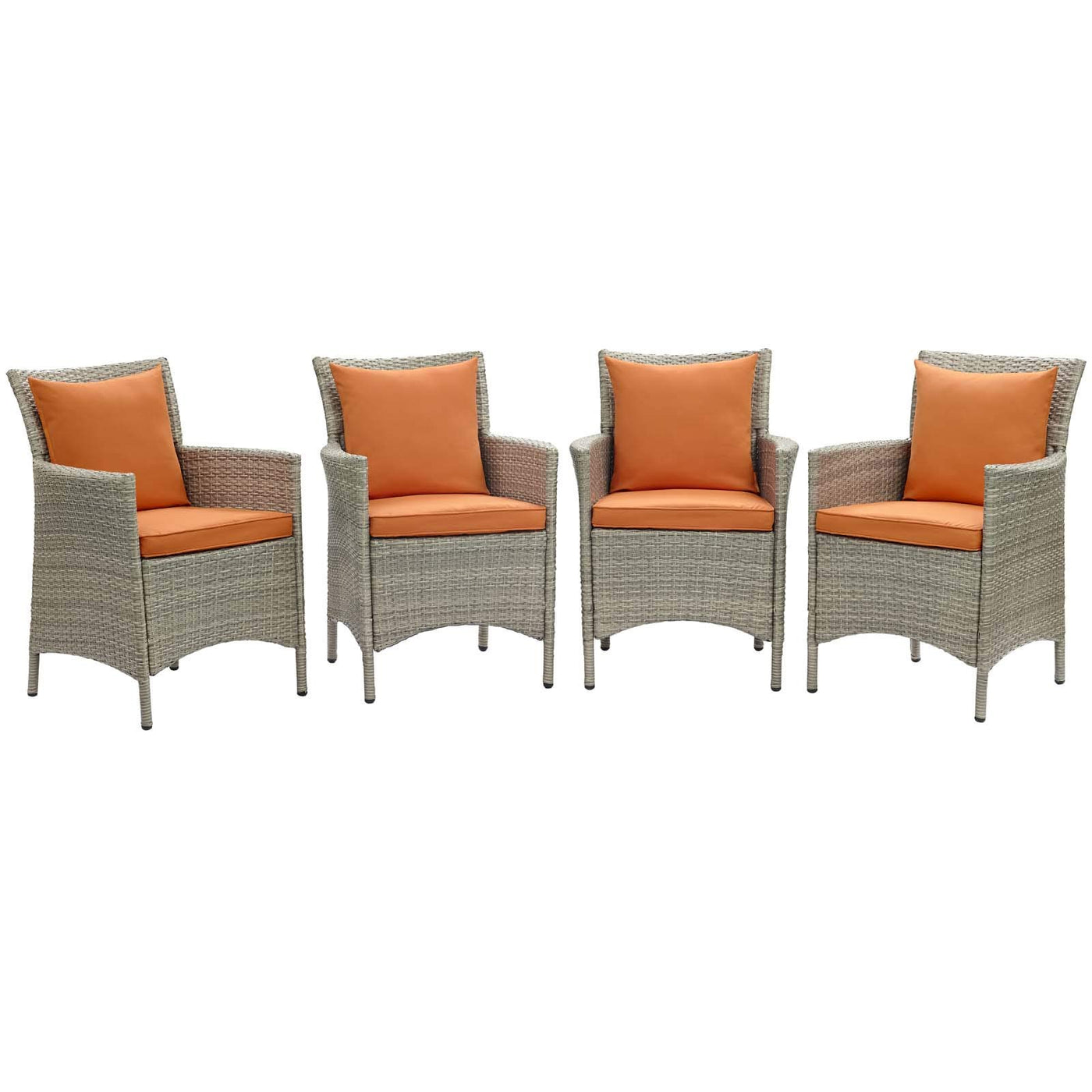 Modway Eei-4028-Lgr-Ora Conduit Outdoor Patio Wicker Rattan Dining Armchair Set Of 4, Light Gray Orange