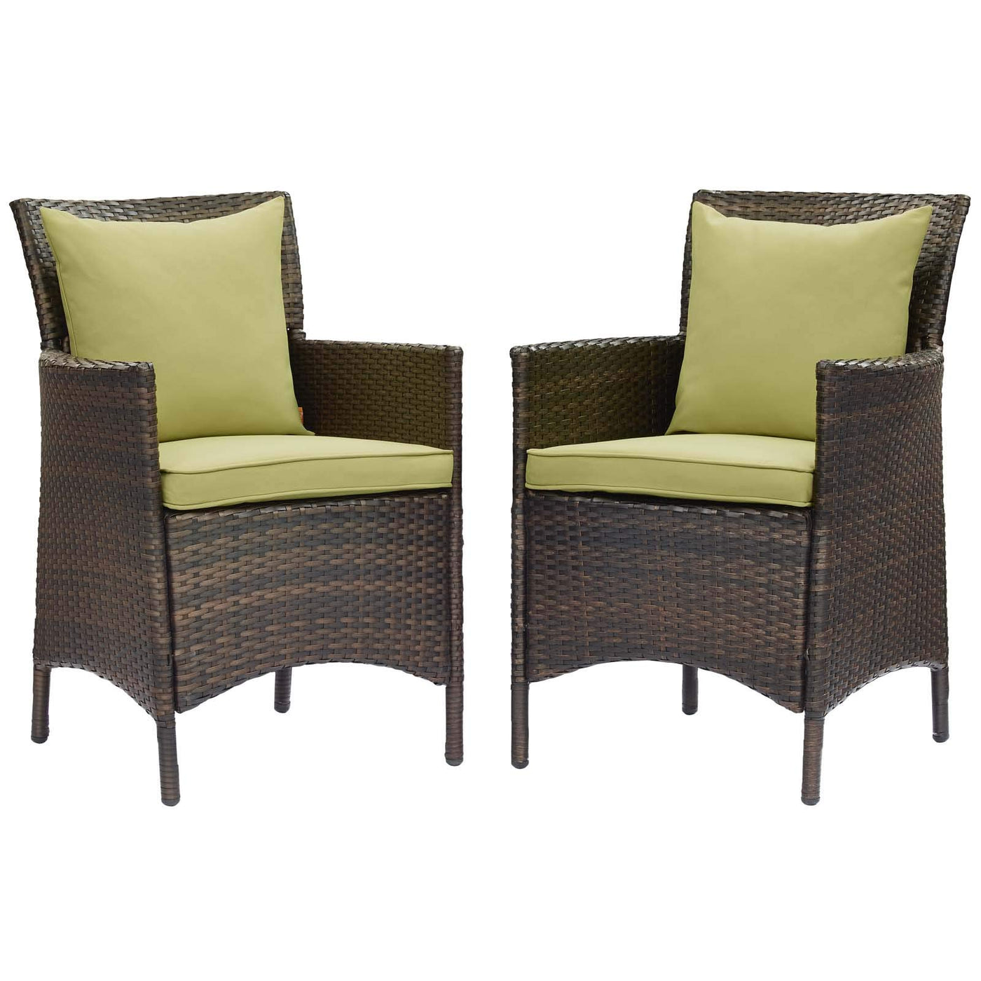 Modway Eei-4030-Brn-Per Conduit Outdoor Patio Wicker Rattan Dining Armchair Set Of 2, Brown Peridot