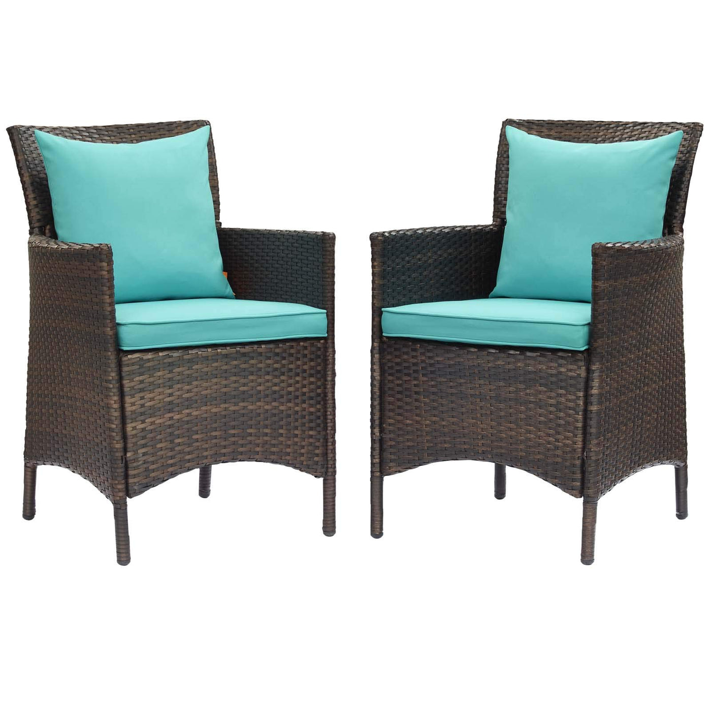 Modway Eei-4030-Brn-Trq Conduit Outdoor Patio Wicker Rattan Dining Armchair Set Of 2, Brown Turquoise