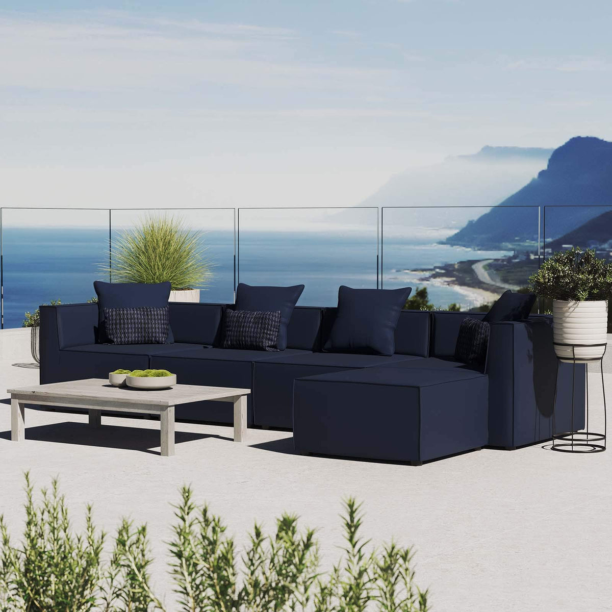Modway Eei-4382-Nav Saybrook Patio Upholstered 5-Piece Sectional Sofa In Navy