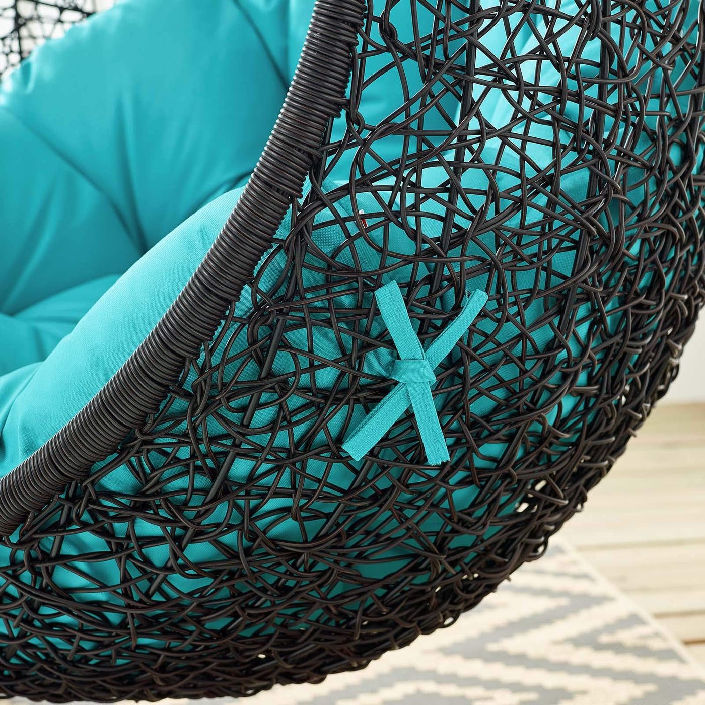 Embark On Moments Of Metamorphosis And Rebirth With An Exotic Hanging Outdoor Swing Chair. Transform The Mundane To Heightened States Of Consciousness With Encase Outdoor Swing Chair. This Hanging Swing Chair Is Comprised Of A Sturdy Espresso Metal Stand And Rattan Seat. Surround Yourself With Plush Fabric Cushions To Complete Entry Into A Relaxed State In The Encase Hanging Chair.