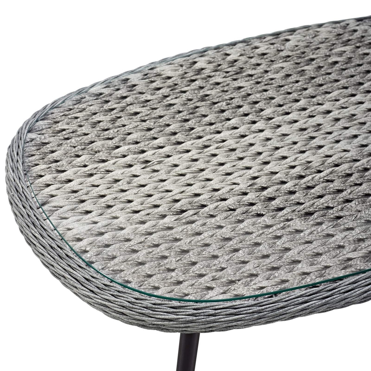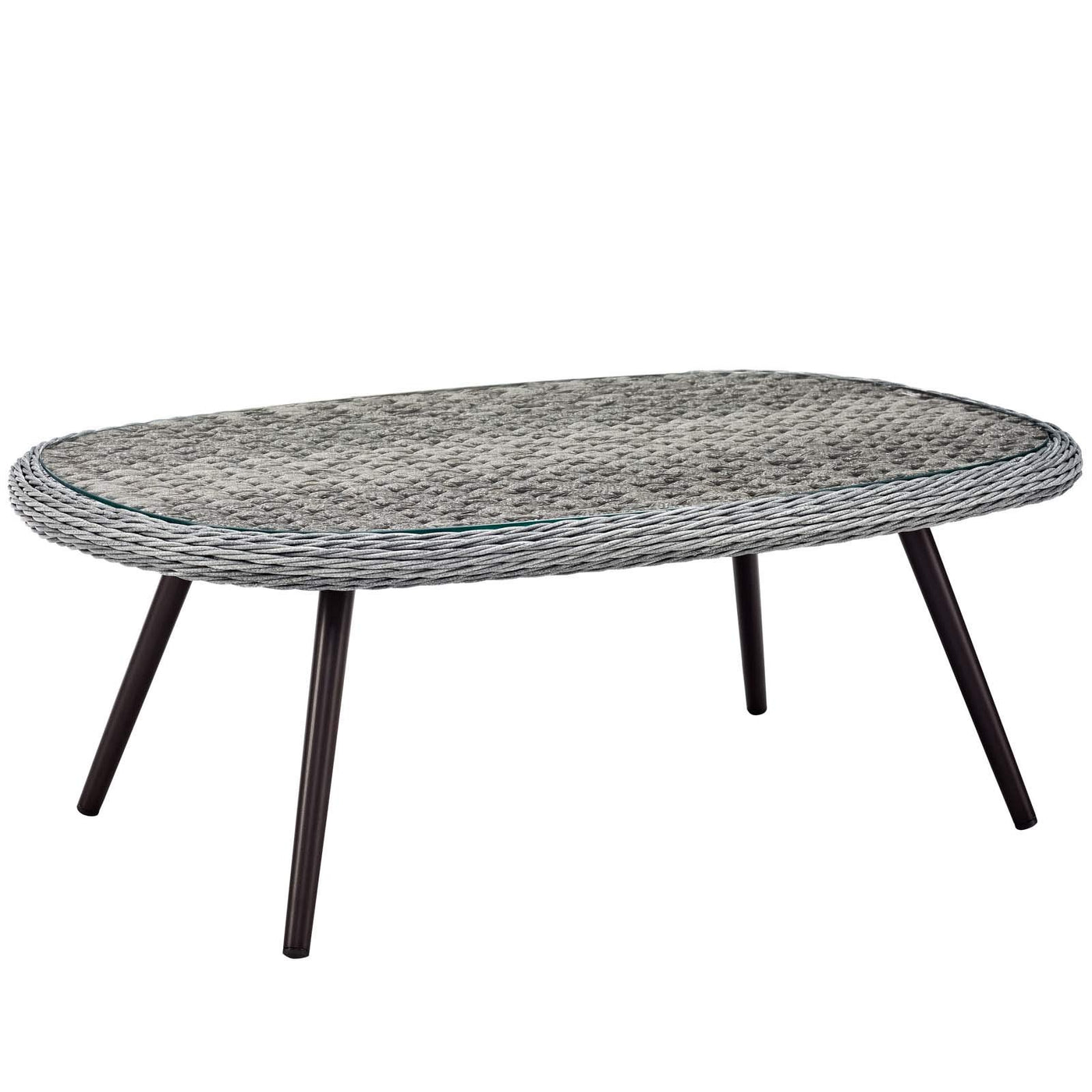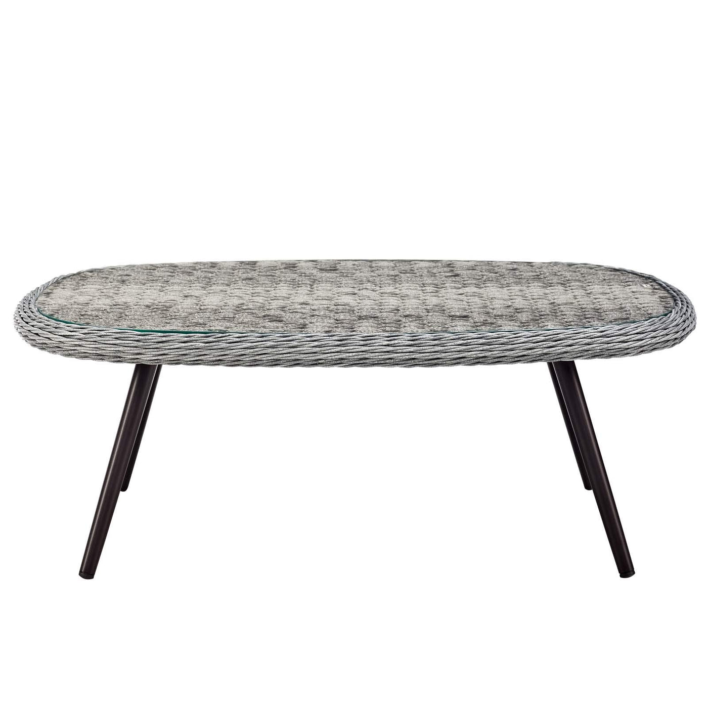 Gather family and friends to indulge in good weather and a premium lounge experience with the Endeavor Outdoor Patio Collection. Sporting a stylish contemporary modern look, Endeavor Outdoor Coffee Table features waterproof, black powder-coated aluminum legs and non-marking foot caps. A designer gray-on-gray tone synthetic rattan weave perfect for upgrading a variety of balcony, garden, backyard, and patio decors make Endeavor Wicker Rattan Patio Coffee Table a vital outdoor decor piece. This patio coffee table installment of the series comes with an easy-to-clean tempered glass table top, providing the ideal surface for resting a plate of hors d’oeuvres, a cocktail or current read.