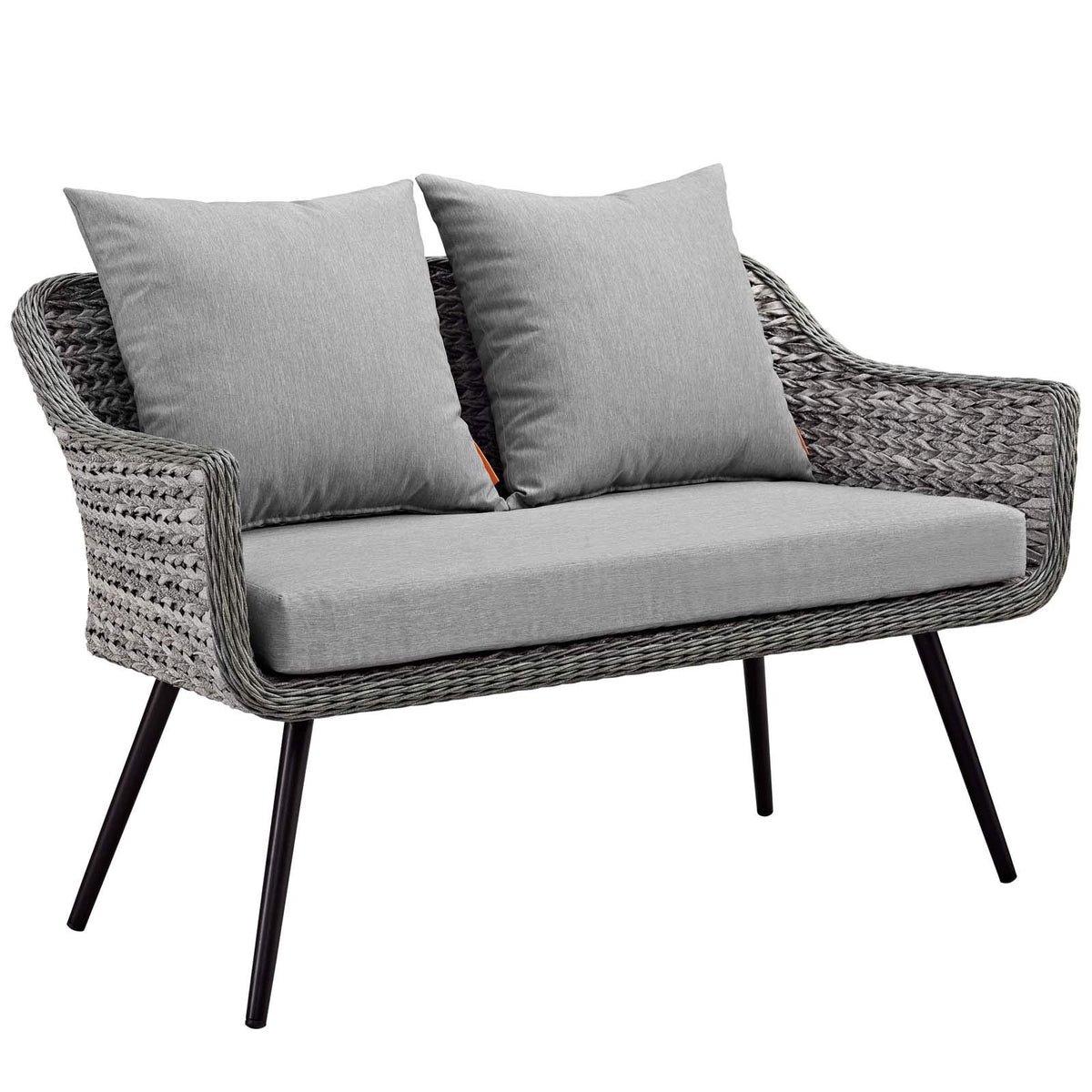 Modway Endeavor Wicker Rattan Aluminum Outdoor Patio Loveseat with Cushions in Gray Gray