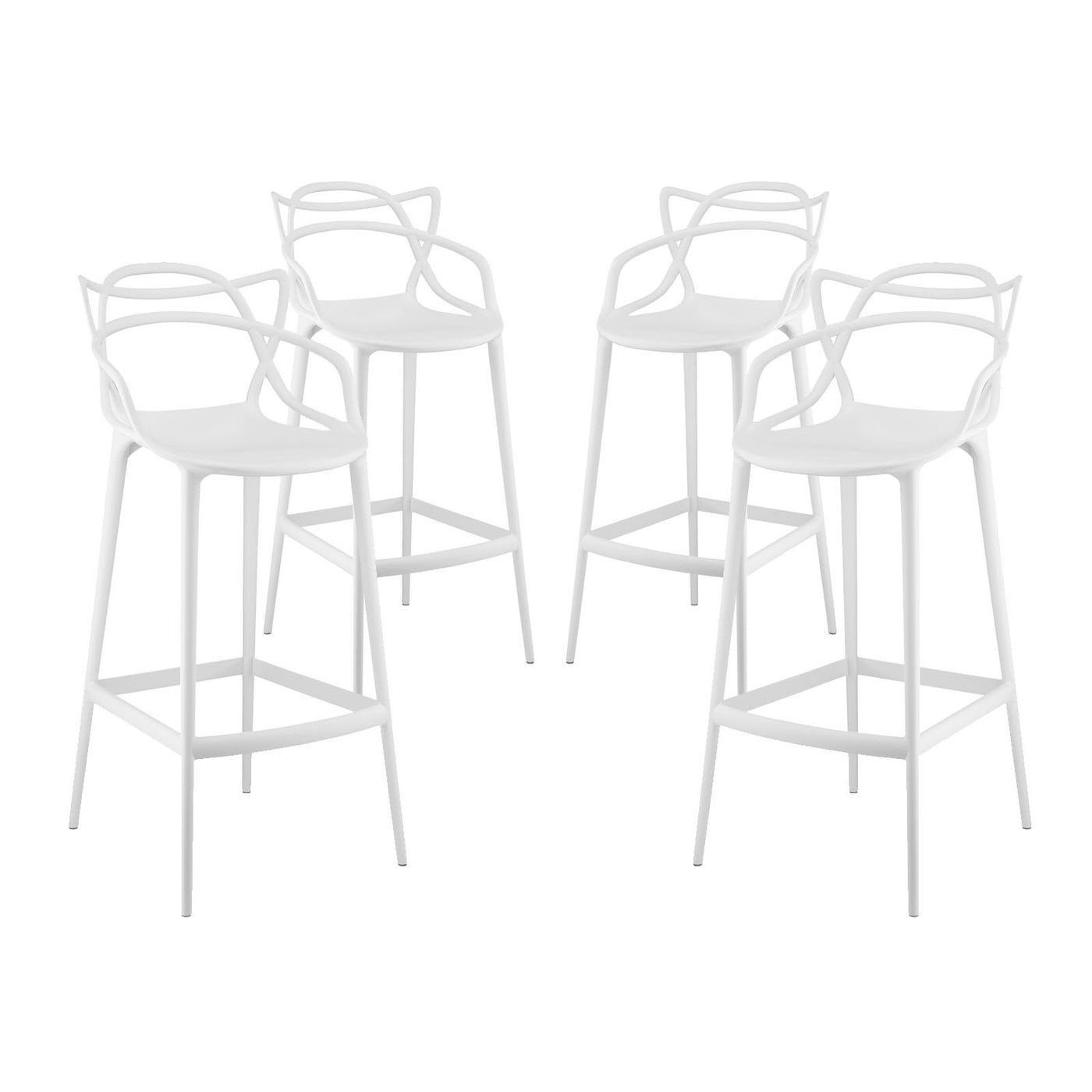 Modway Entangled Modern Molded Plastic Four Bar Stools In White - Fully Assembled