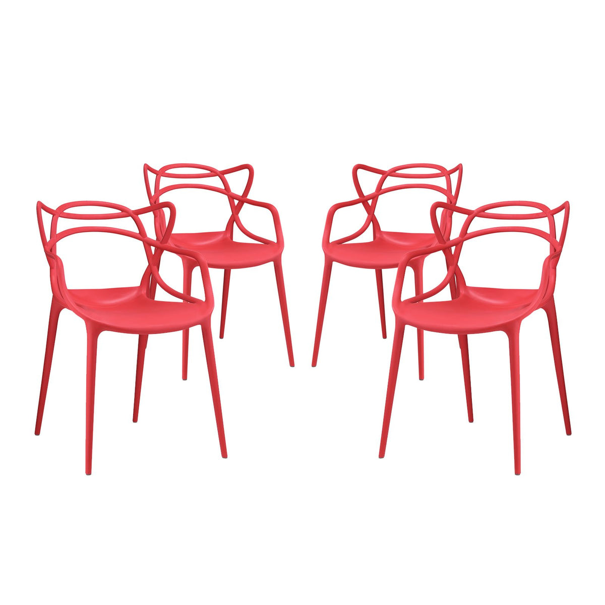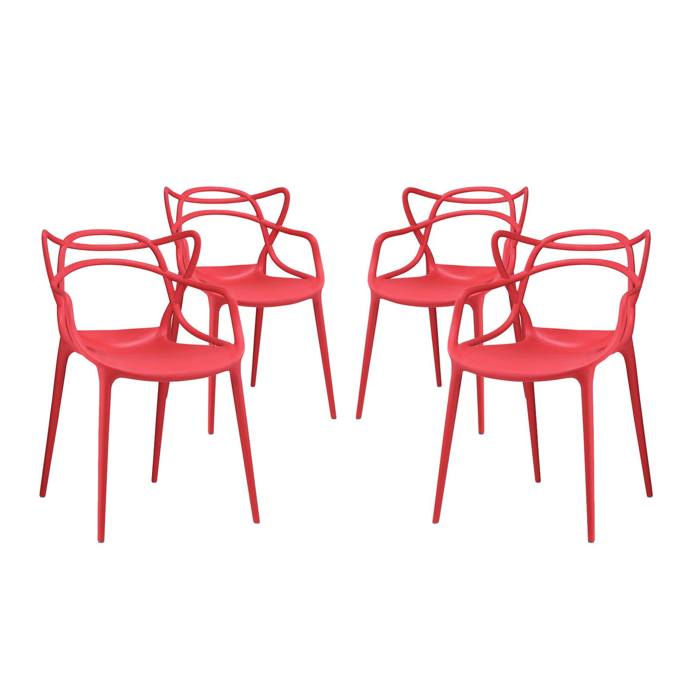 Modway Entangled Modern Molded Plastic Four Dining Armchairs In Red