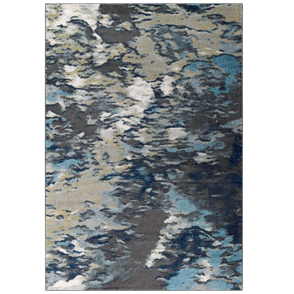 Modway Entourage Foliage Contemporary Modern Abstract Area Rug, 8X10, Blue, Tan, Gray