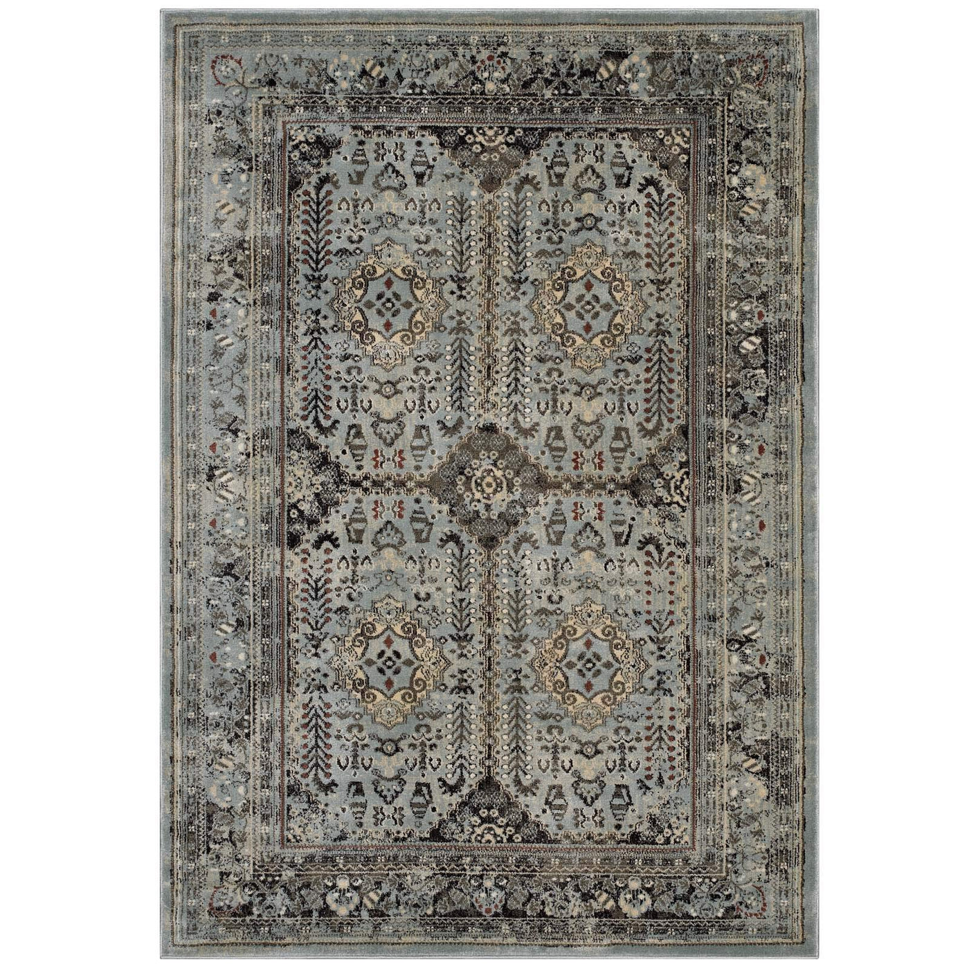 Modway Enye Distressed Vintage Floral Lattice 8X10 Area Rug In Brown And Silver Blue