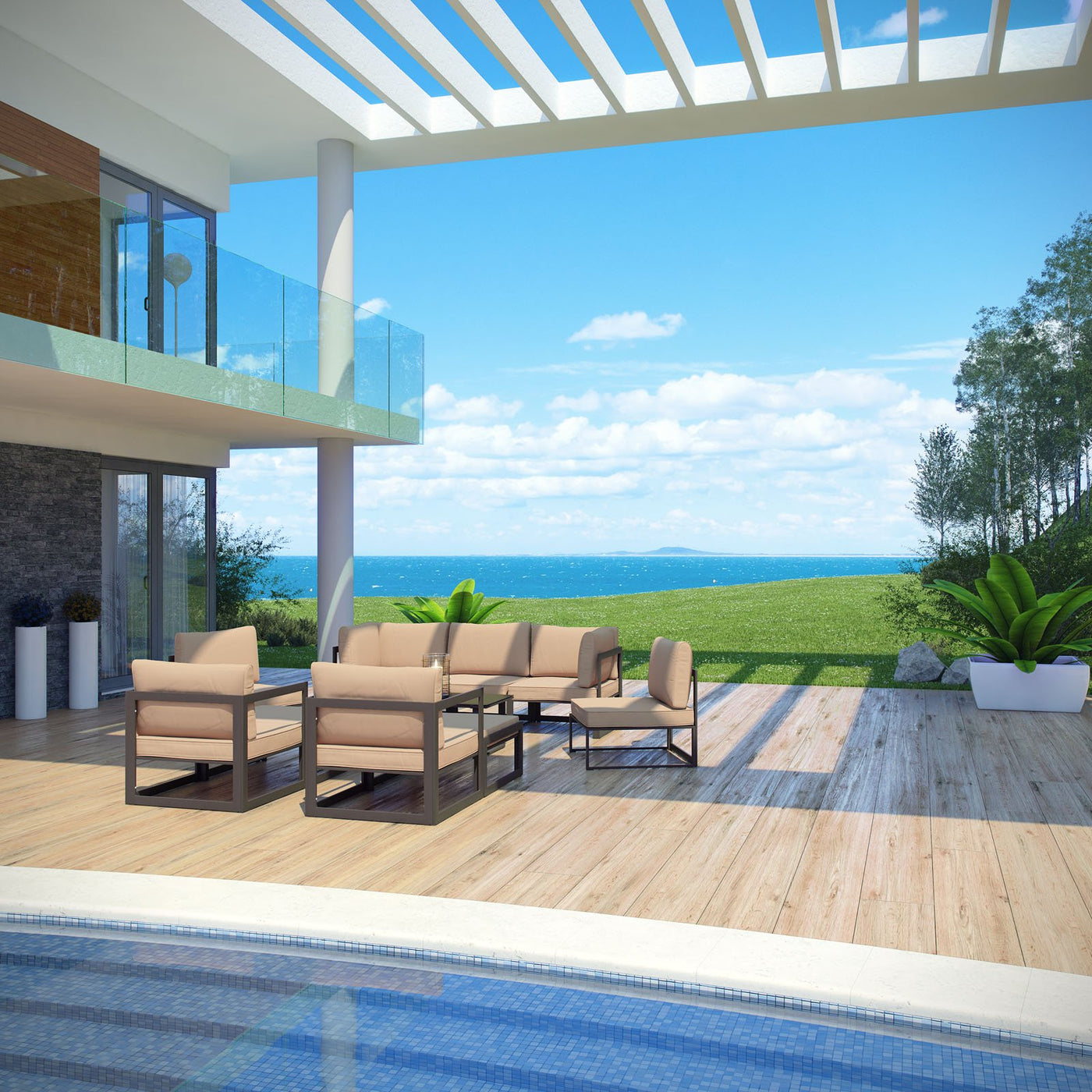 Modway Fortuna 6-Piece Aluminum Outdoor Patio Sectional Sofa Set in Brown Mocha