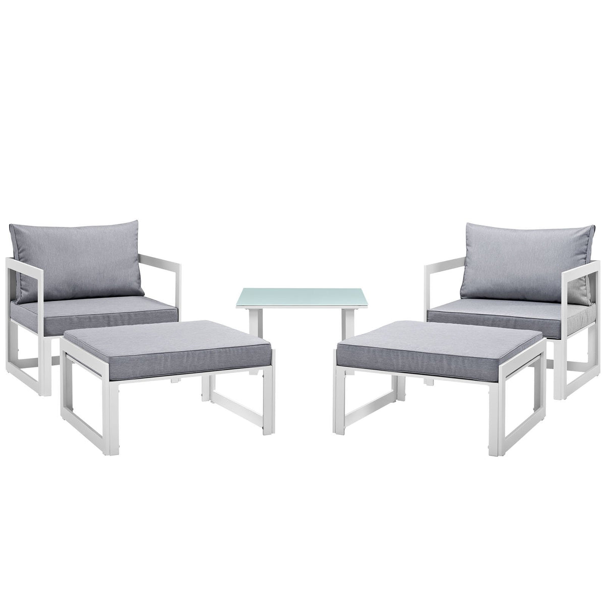 Modway Fortuna Aluminum 5-Piece Outdoor Patio Furniture Set With Cushions In White Gray