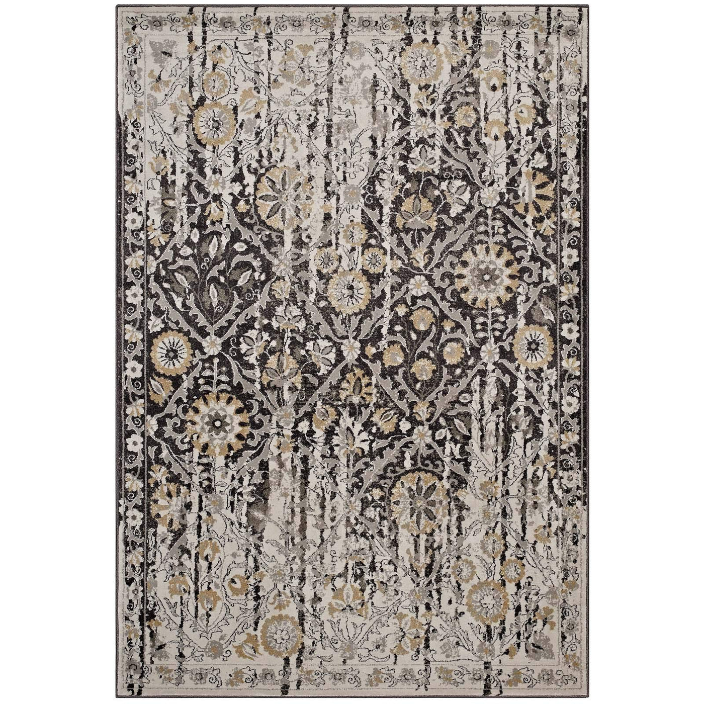 Modway Ganesa Distressed Diamond Floral Lattice 5X8 Area Rug In Black And Beige