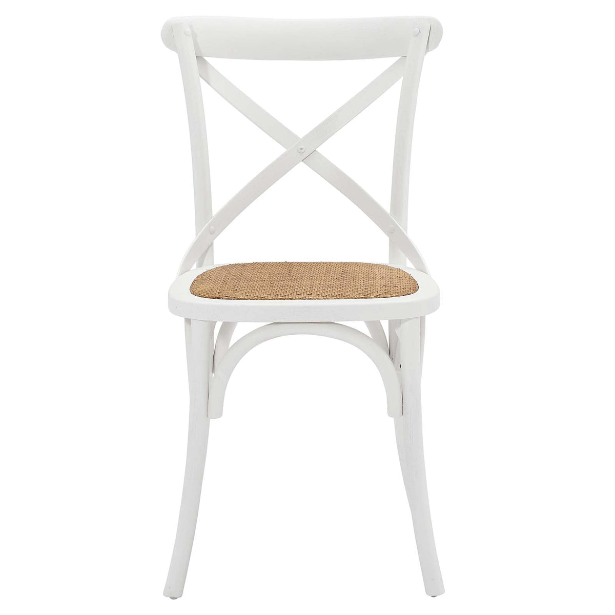 FARMHOUSE STYLE - Transporting you to a cafe on the bustling streets of Vienna, Gear effortlessly blends farmhouse and modern styles, bringing intriguing rustic charm to your dining area. | SUPPORTIVE COMFORT - A preferred choice for the dining room, Gear boasts a natural rattan seat that offers a supportive, comfortable place to rest on while eating, chatting, working or reading a book. | SUPERIOR CONSTRUCTION - Crafted with solid elm wood, Gear adds charm and nostalgia to the dining room. Sitting atop bowed legs, the open cross back frame is complemented by the curved apron detail. | CHAIR MEASUREMENTS - A warm accent to your dining table, family room, office desk or vanity, Gear adds sophisticated style to your well-rounded home. Overall Product Dimensions: 21"L x 19.5"W x 34.5"H