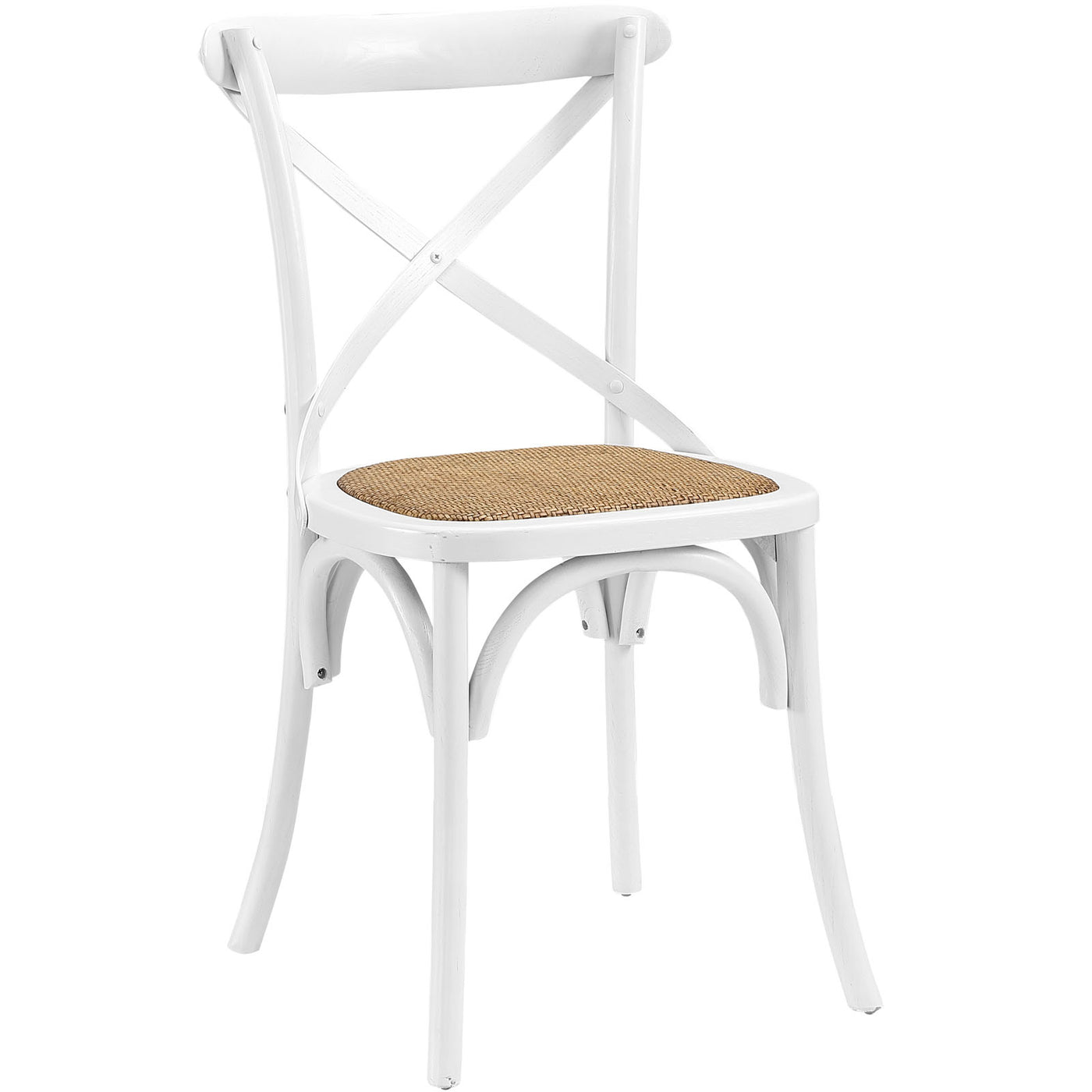 Modway Gear Rustic Modern Farmhouse Elm Wood Rattan Dining Chair in White