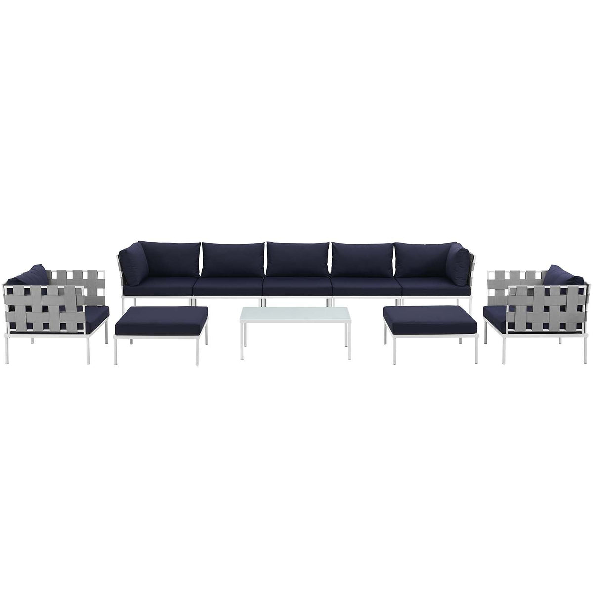 Modway Harmony 10 Piece Outdoor Patio Aluminum Sectional Sofa Set In White Navy