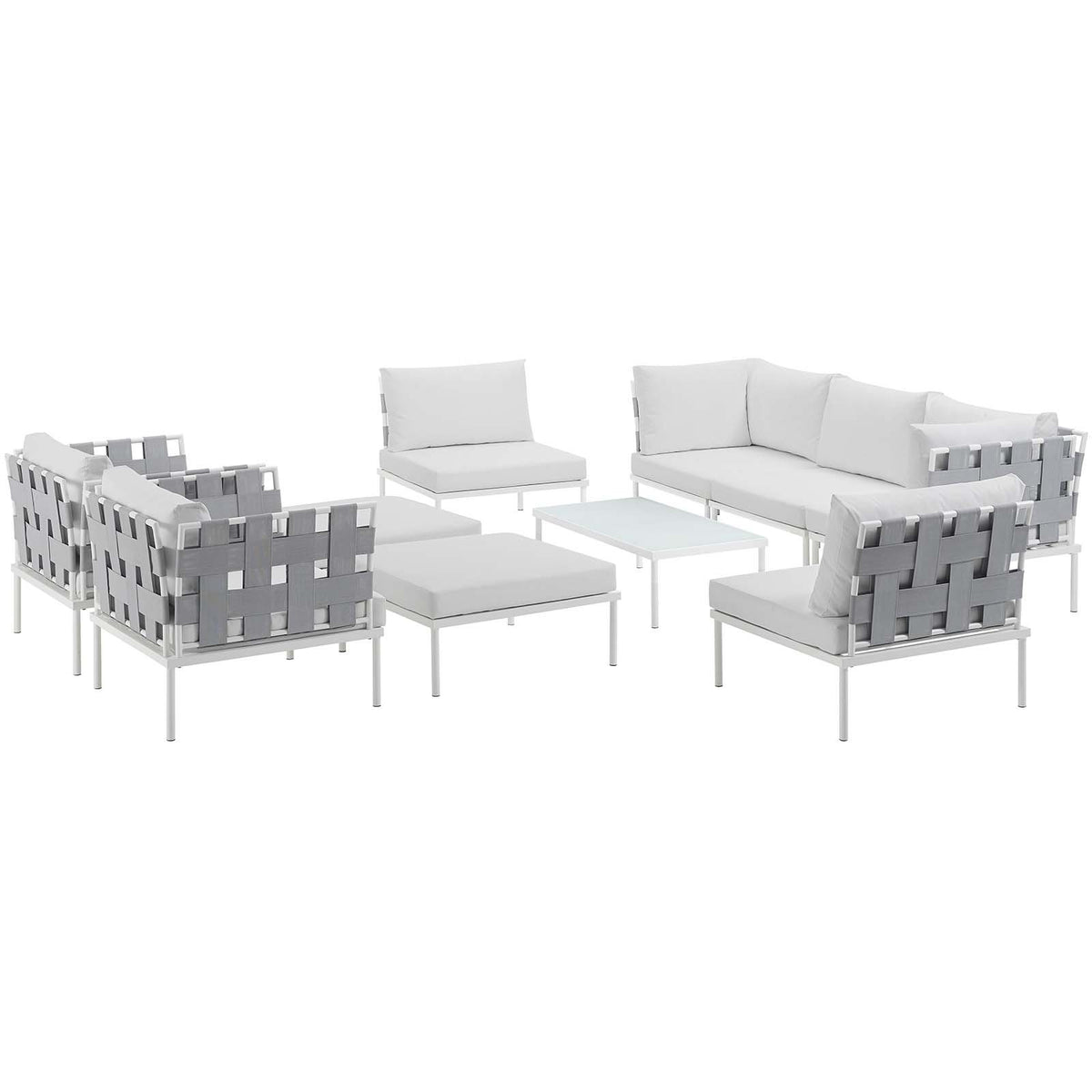 Modway Harmony 10 Piece Outdoor Patio Aluminum Sectional Sofa Set In White White
