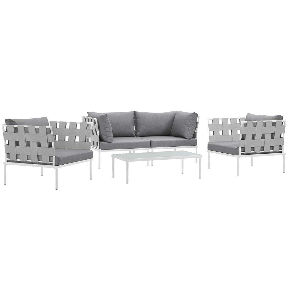 Modway Harmony 5-Piece Aluminum Outdoor Patio Furniture Sectional Sofa Set With Cushions In White Gray