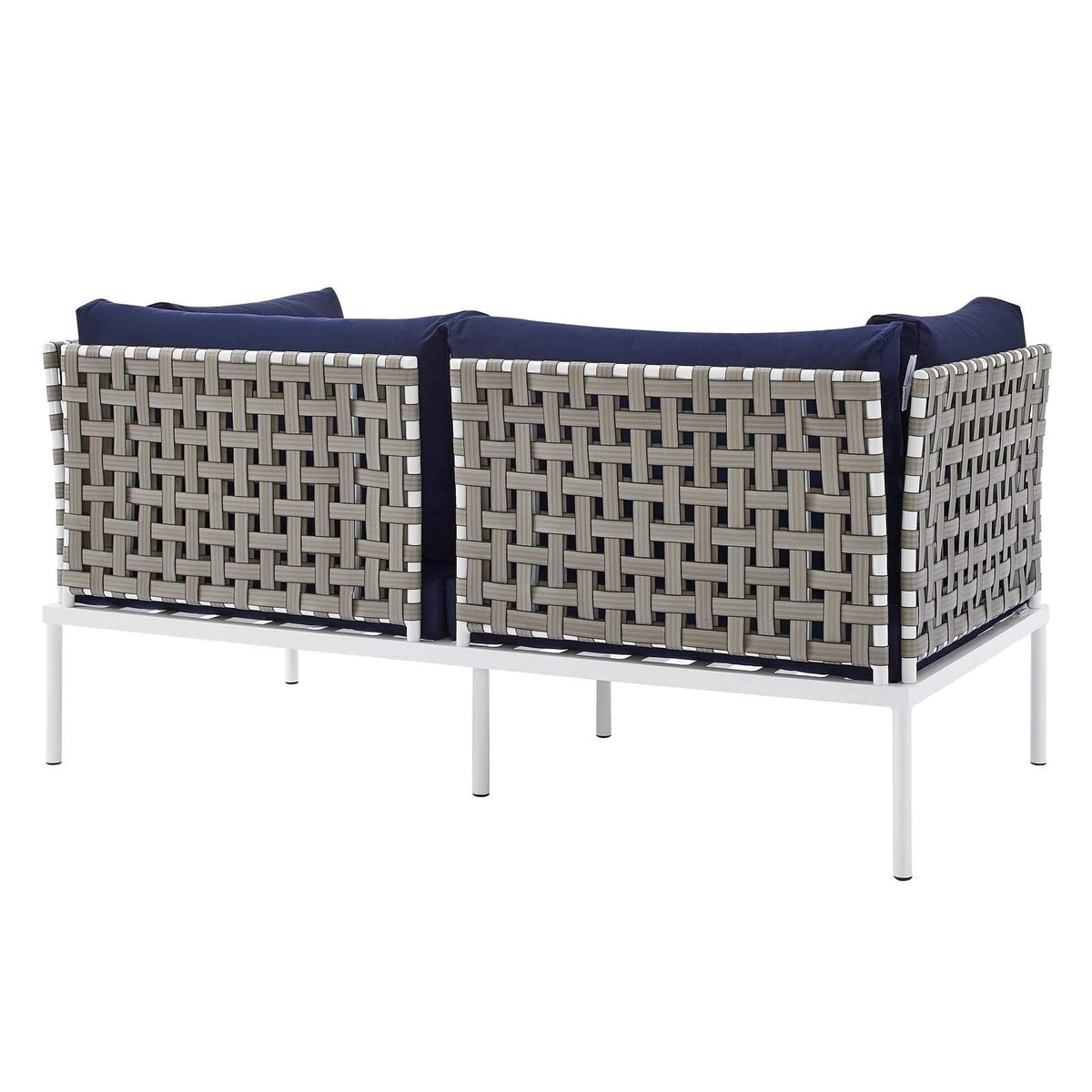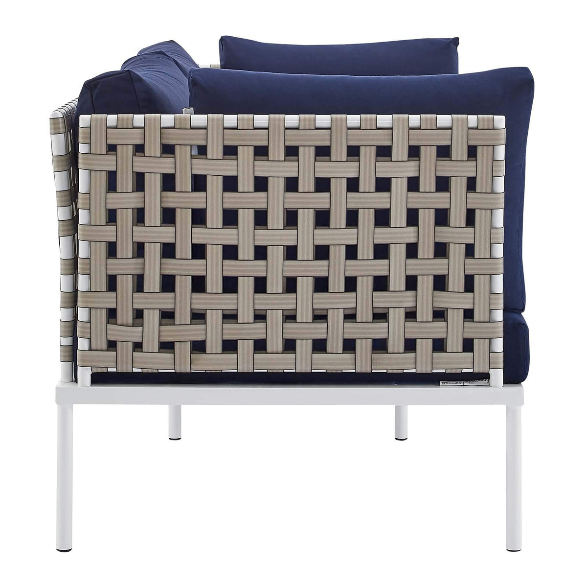Modway Harmony Outdoor Patio Basket Weave Loveseat in Tan Navy