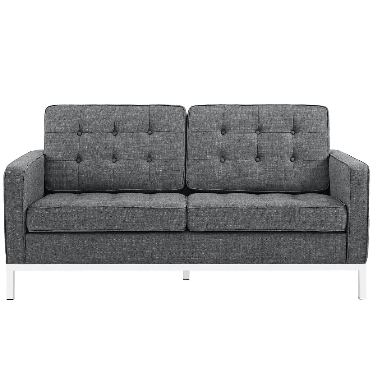 Modway Loft Upholstered Fabric Mid-Century Modern Loveseat In Gray