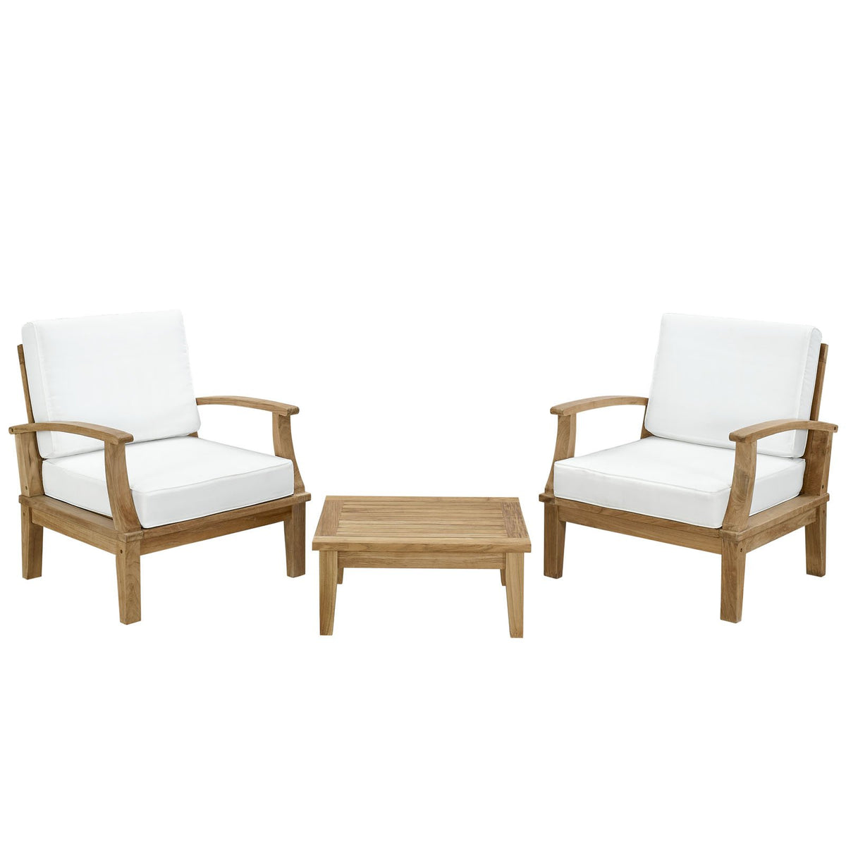 Modway Marina 10-Piece Patio Teak Outdoor Sofa Set, Natural White