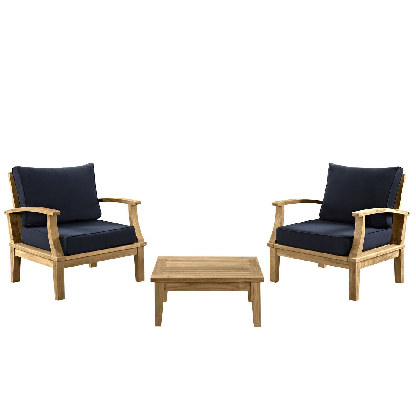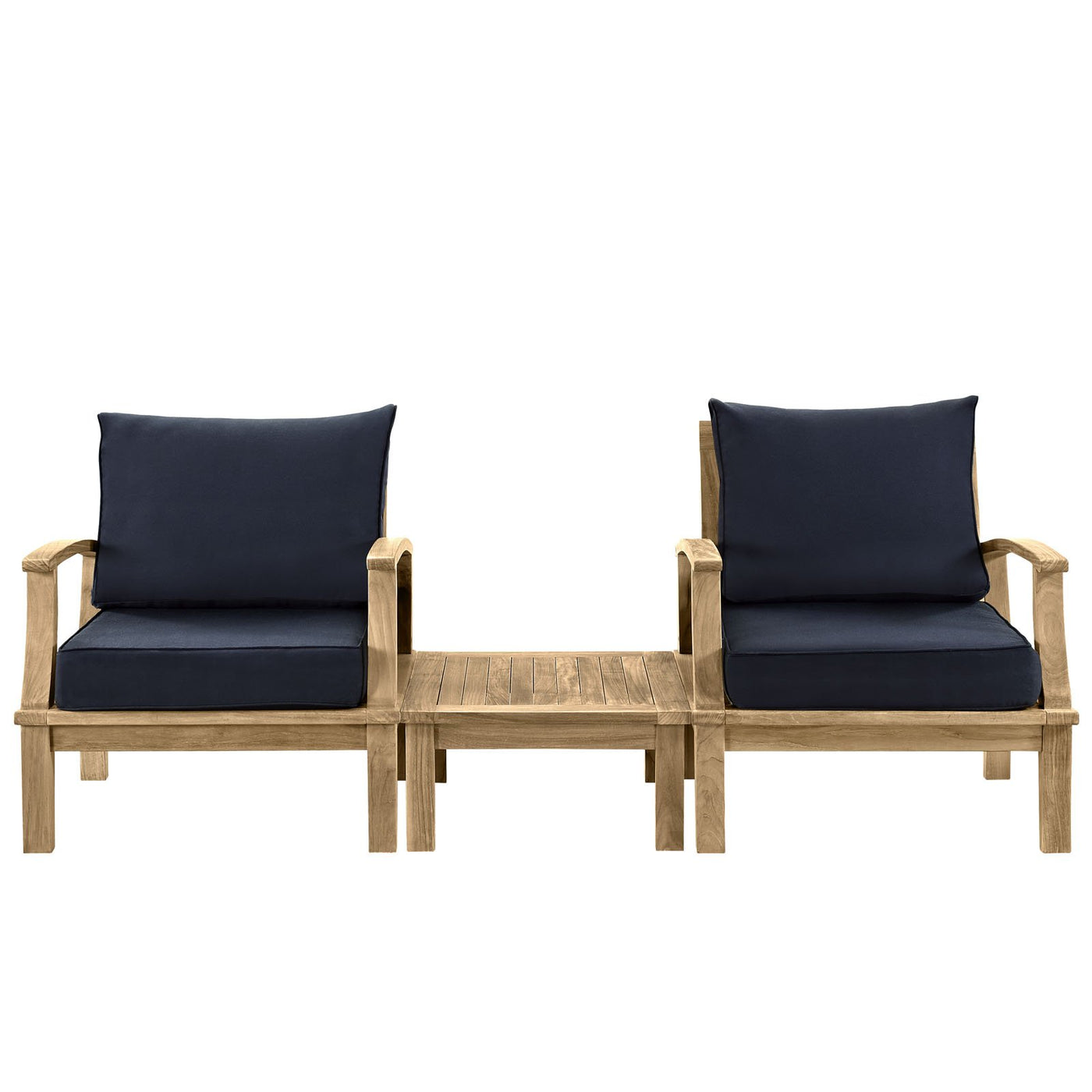 Modway Marina 3 Piece Outdoor Patio Teak Sofa Set In Natural Navy