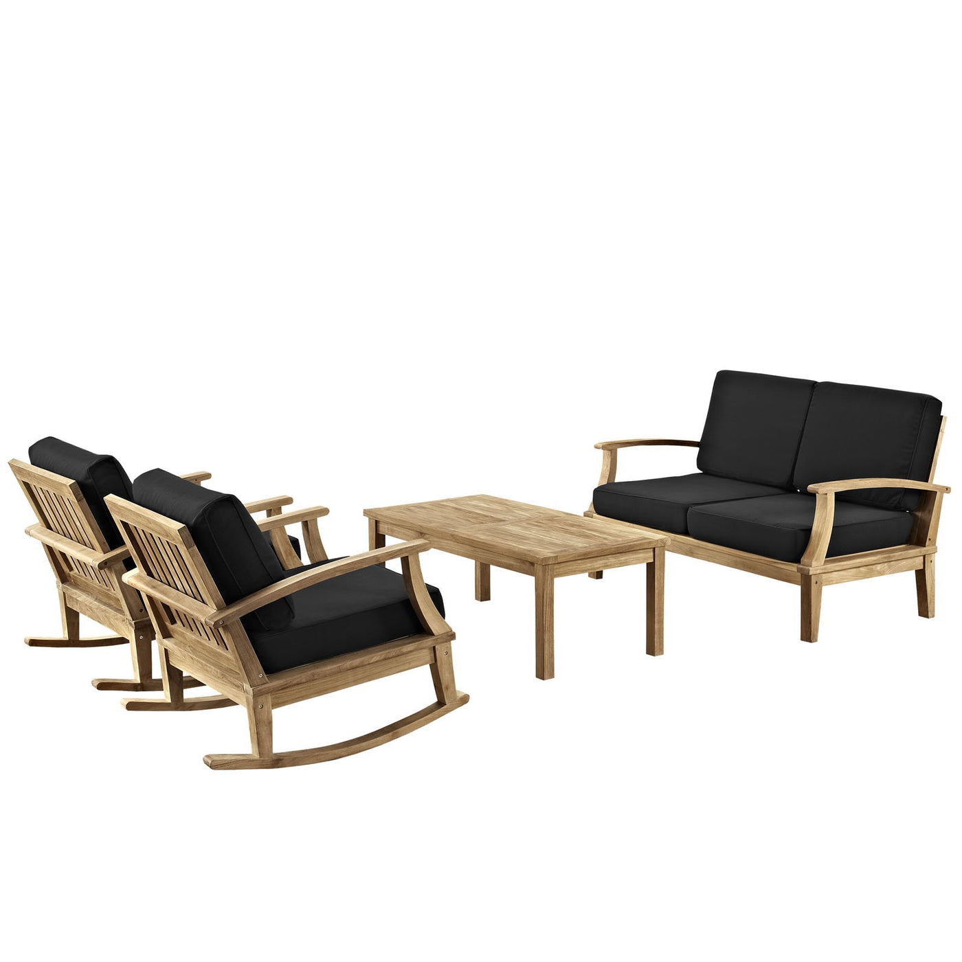 Modway Marina 4 Piece Outdoor Patio Teak Sofa Set in Natural Black
